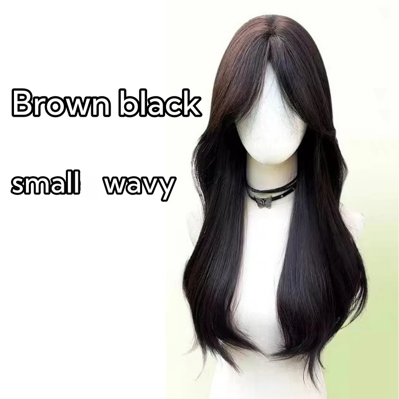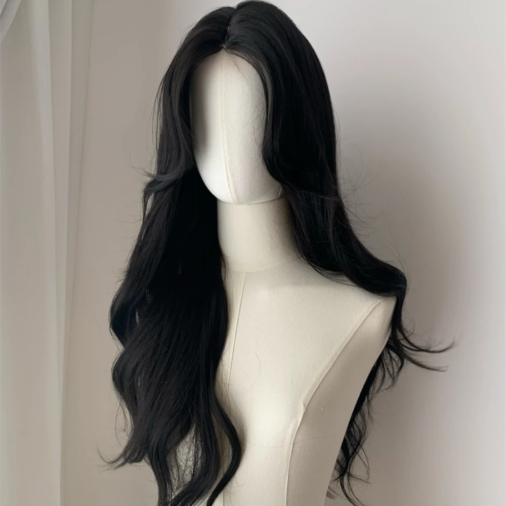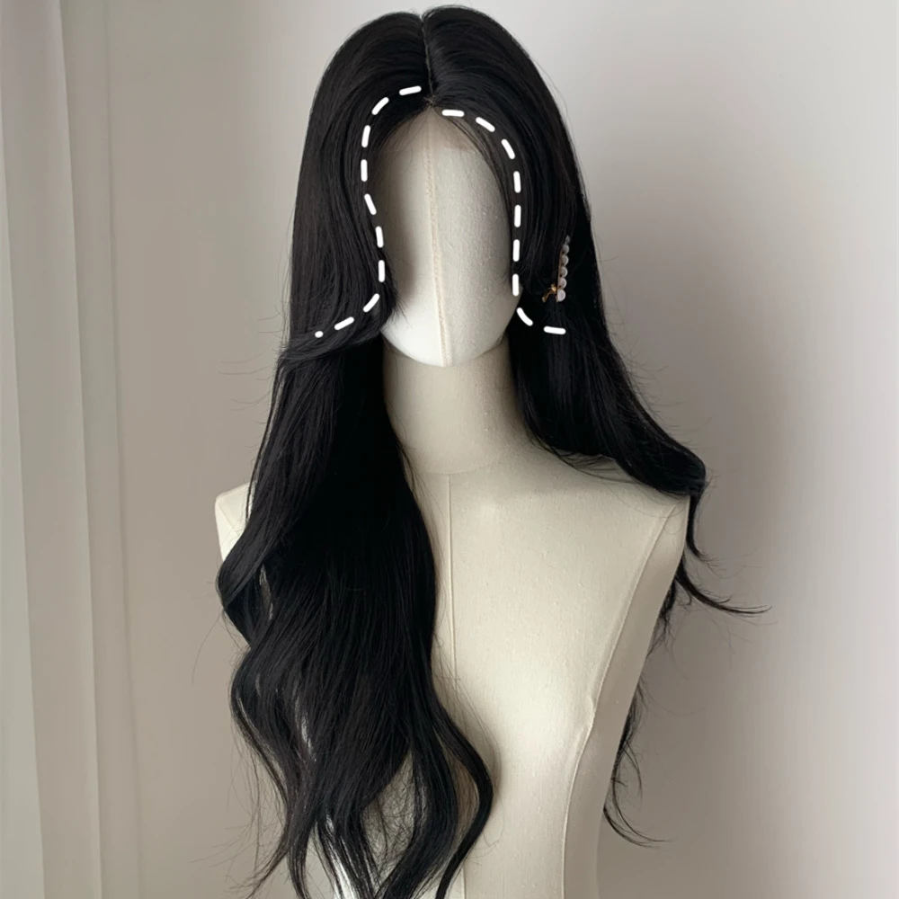 OKLULU - Ningning‘s hair Long Black Wig for Women Big Wave Curly Hair Headband Wigs with Eight Bangs Small Lace Front Natural Lolita Wigs