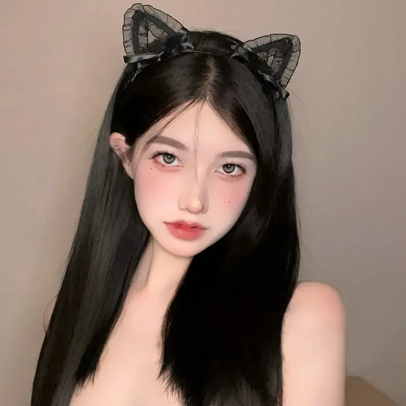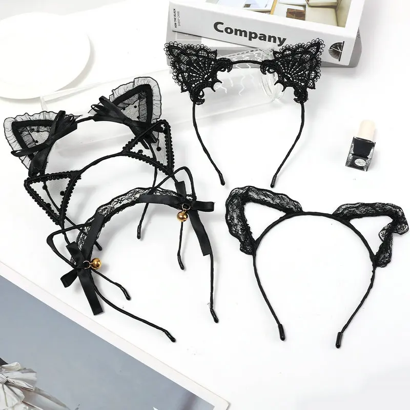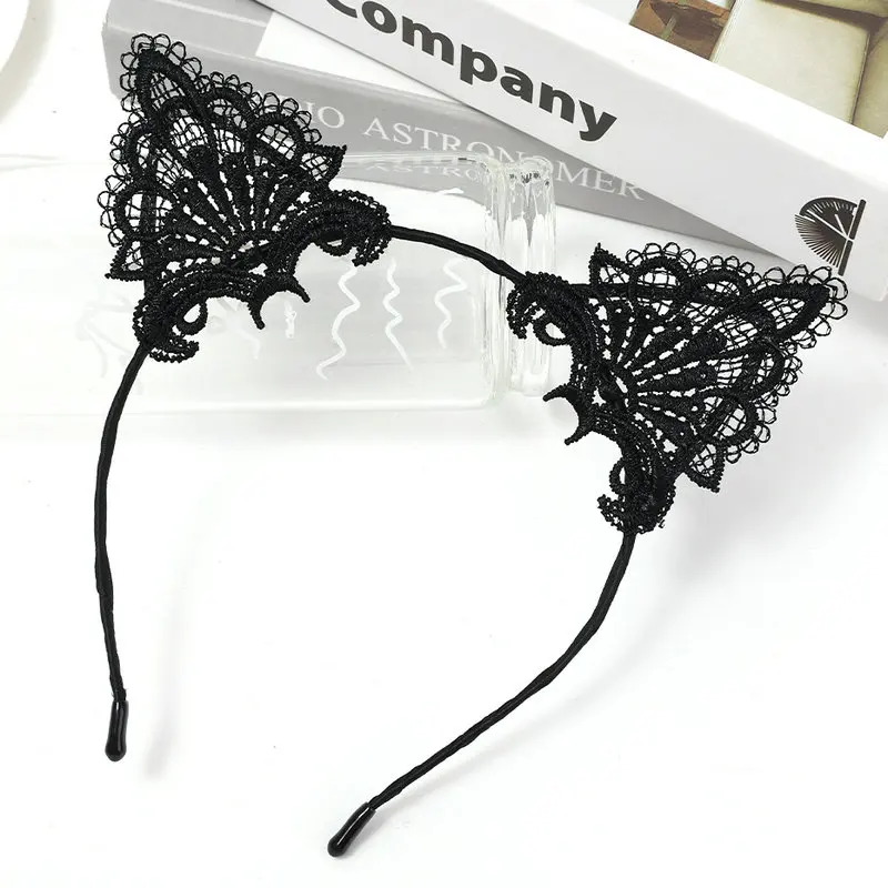 OKLULU - Women Sexy Black Cat Ears Head Bezel Fashion Lace Lady Hairband Cosplay Headwear Headband Girl Birthday Party Hair Accessories