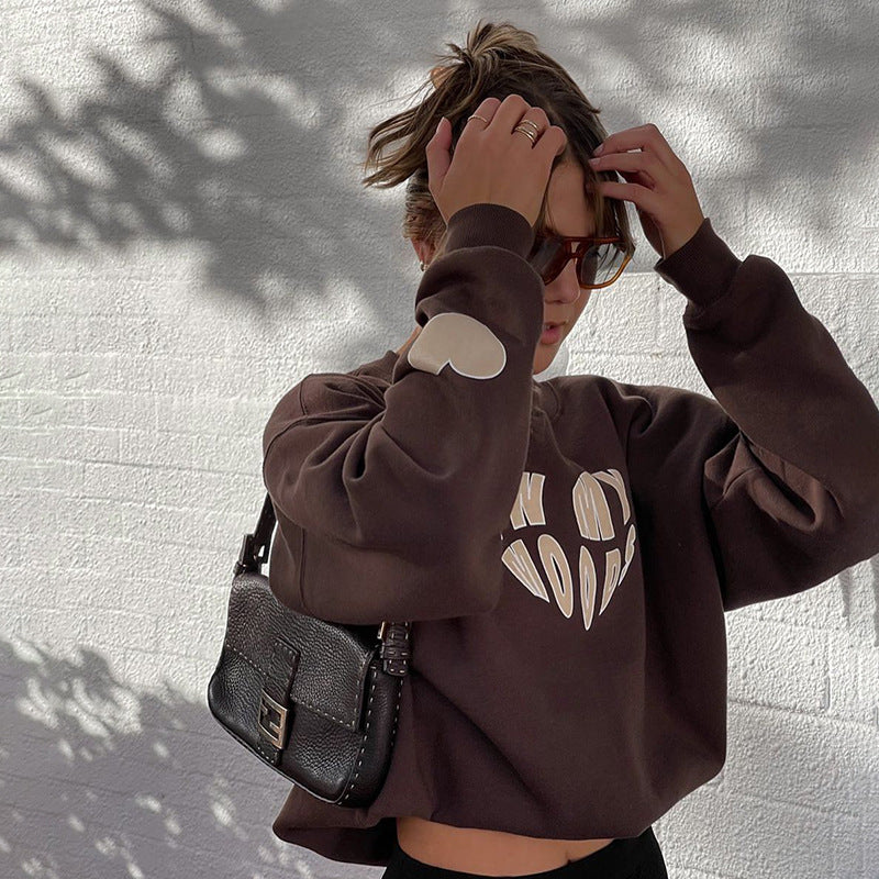 2000s fashion 2024 Autumn and Winter New Women's Love Printed Pullover Casual Sweater Women's All-Match Long-Sleeved Top
