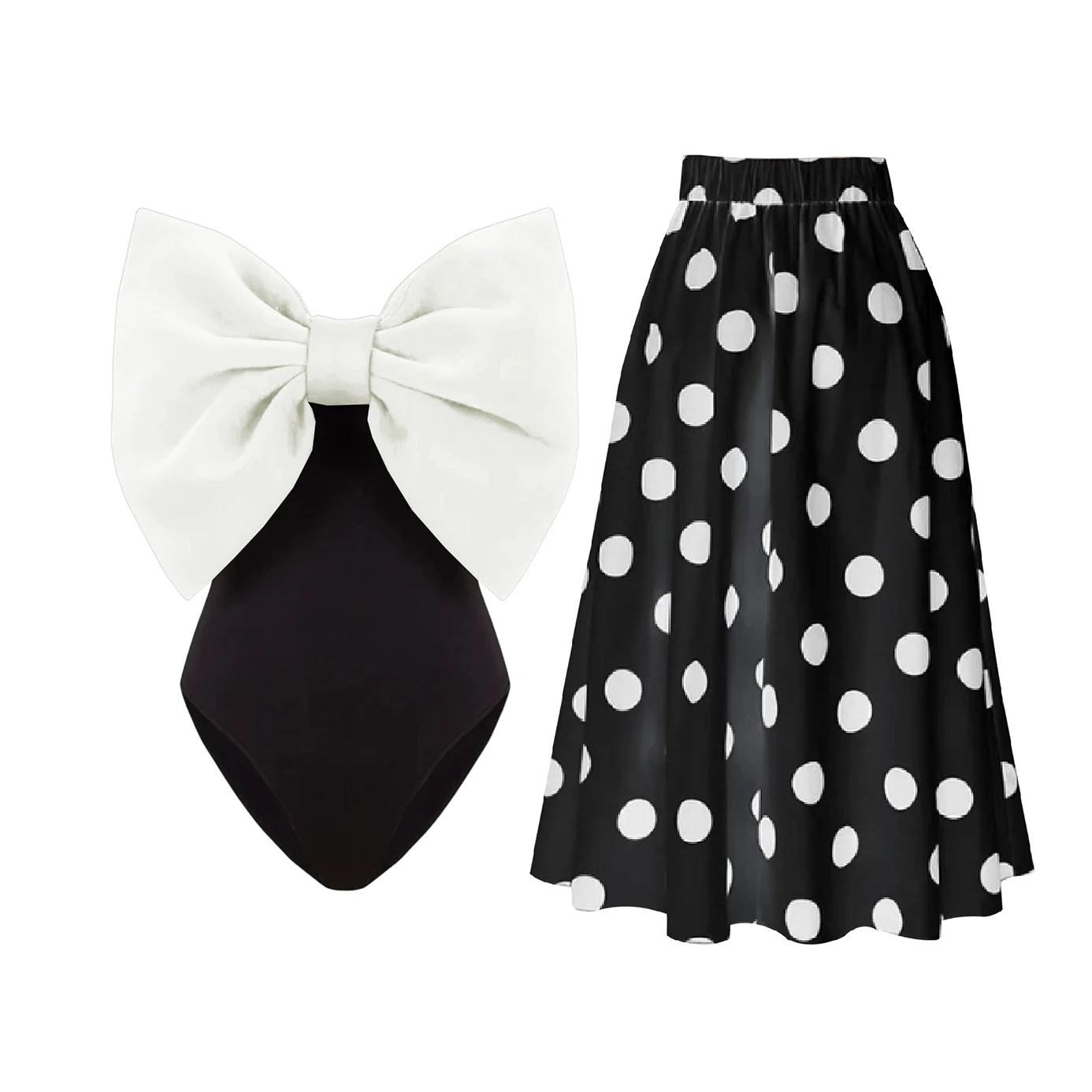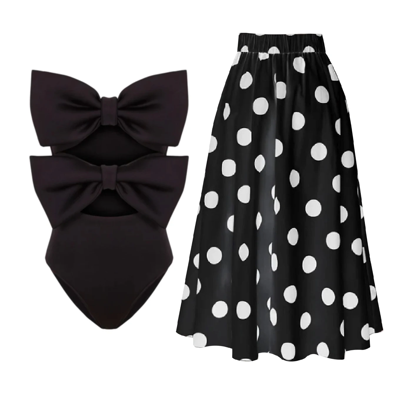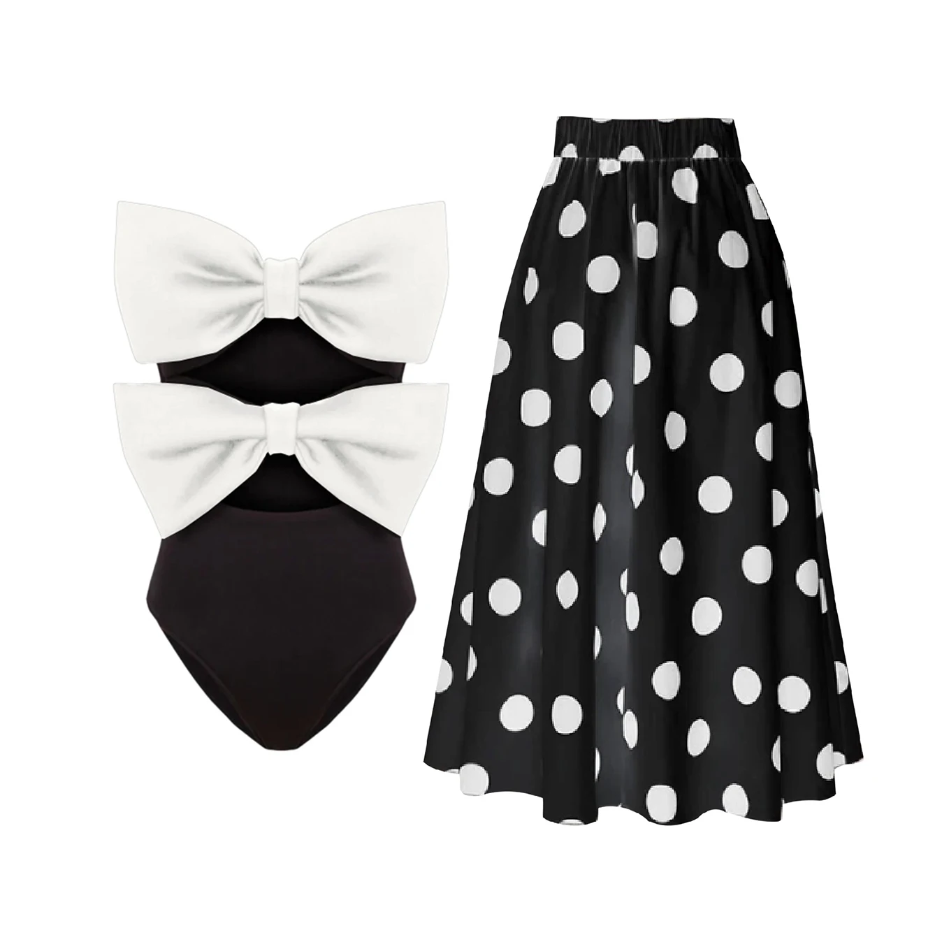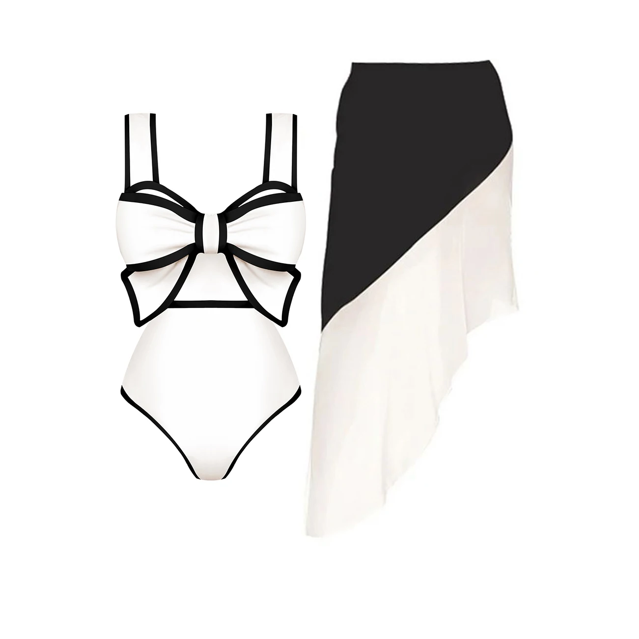 qgtao 2024 Black White Retro One Piece Swimsuit Women Bow Tie Swimwear with Skirt Sexy Bathing Suit Monokini Beach Bodysuit Beach Wear