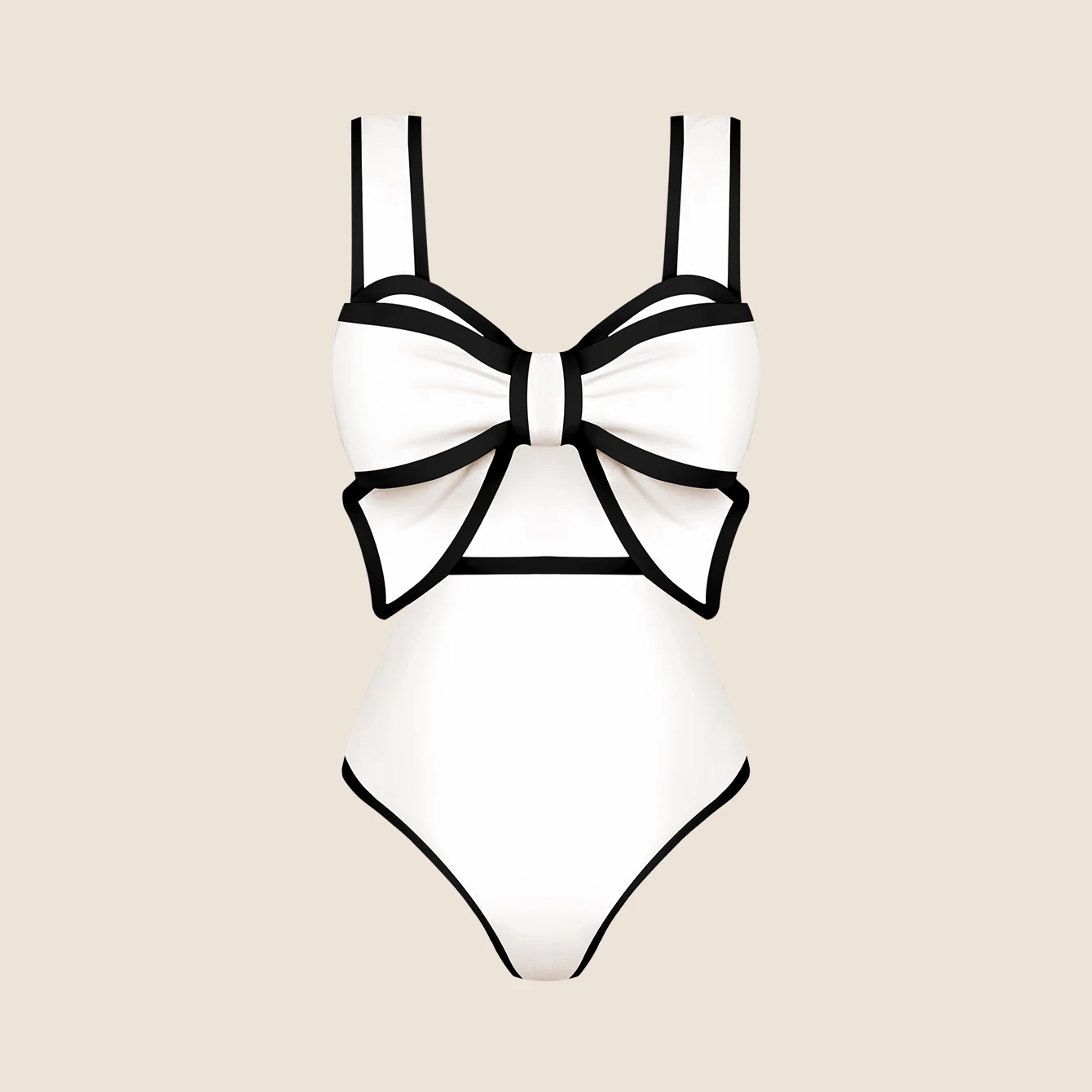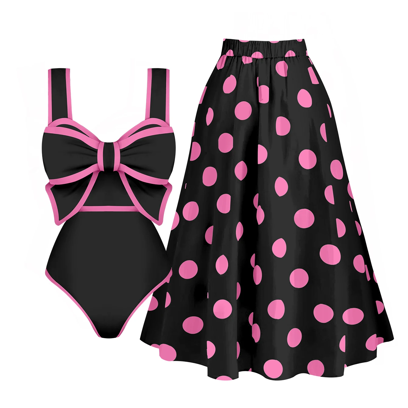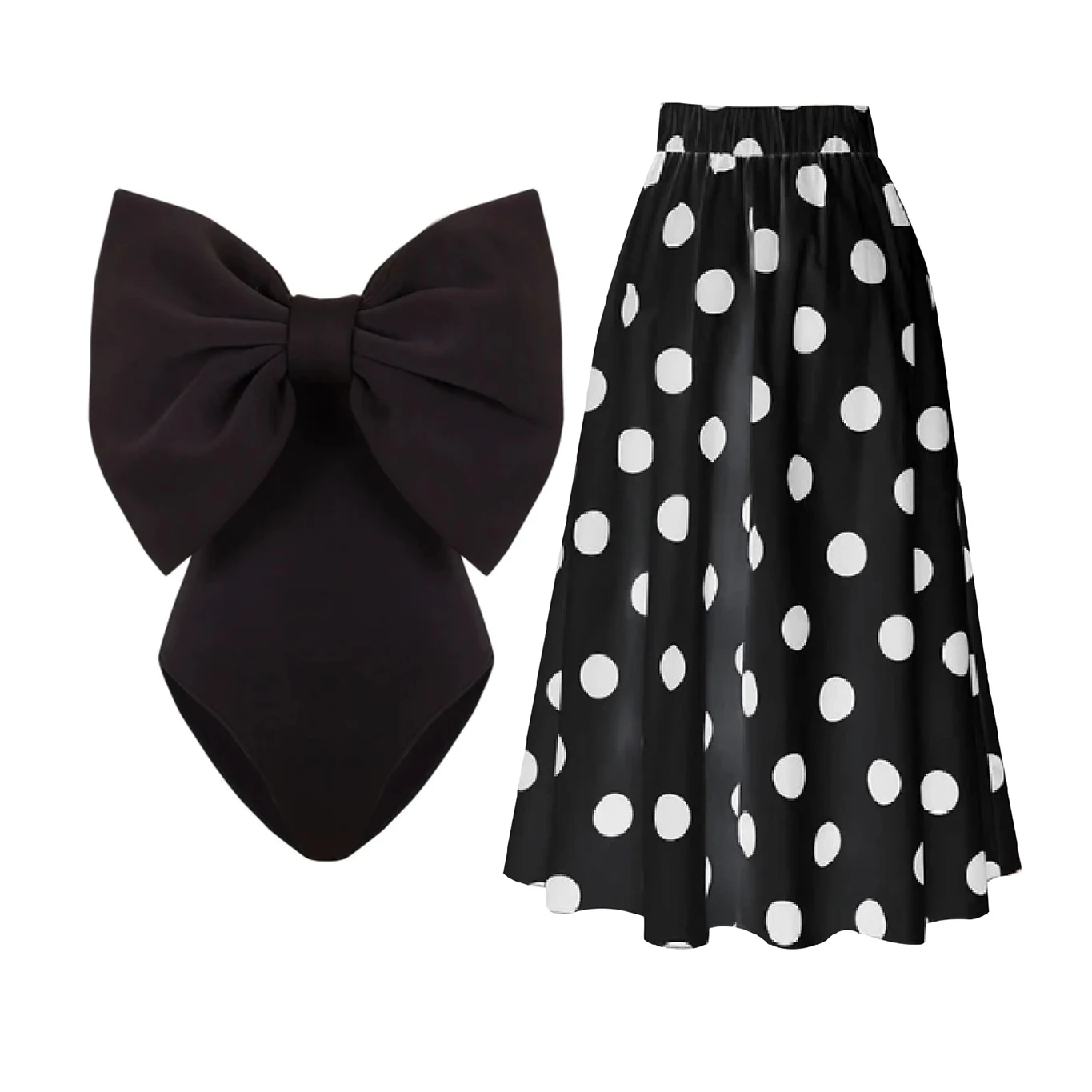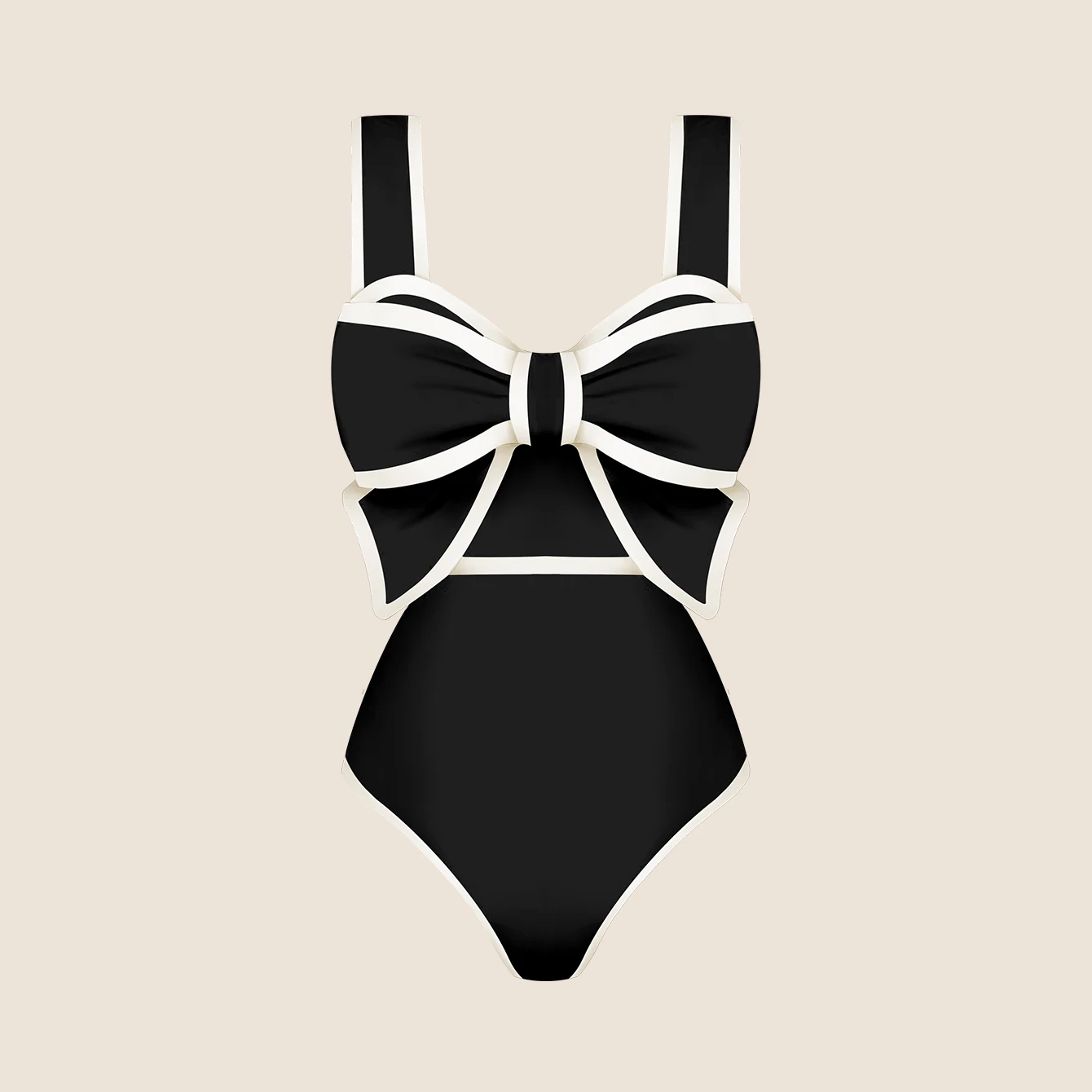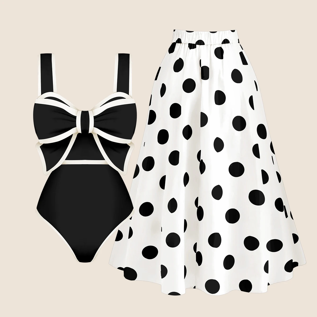 qgtao 2024 Black White Retro One Piece Swimsuit Women Bow Tie Swimwear with Skirt Sexy Bathing Suit Monokini Beach Bodysuit Beach Wear