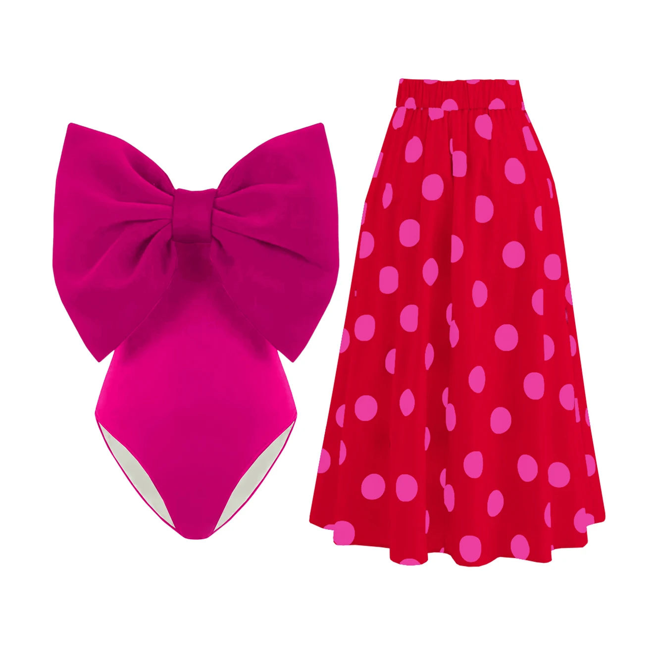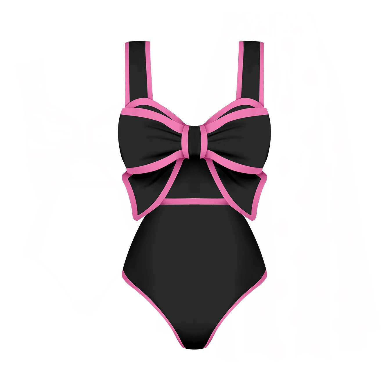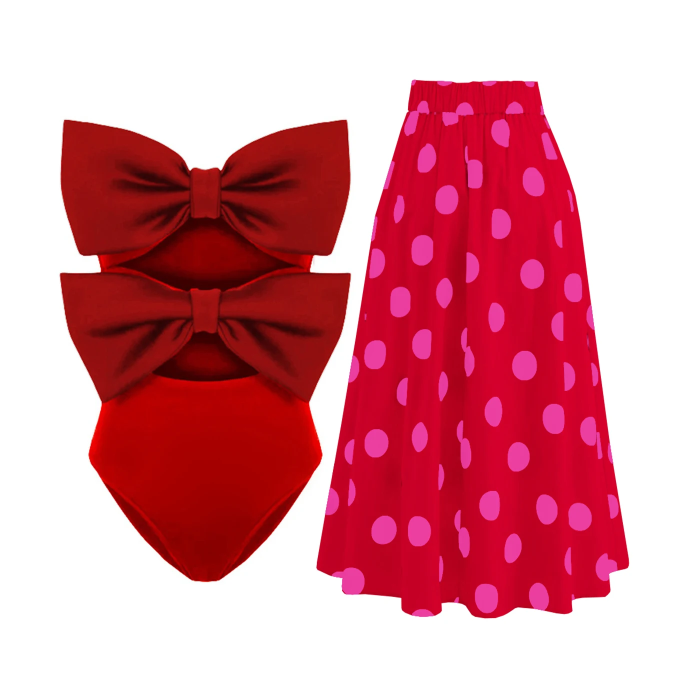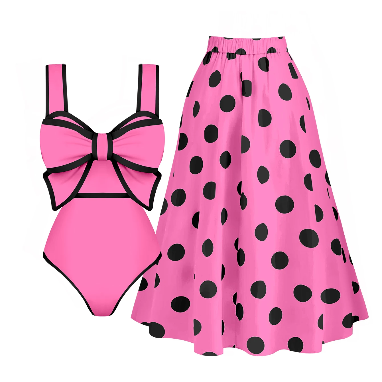 qgtao 2024 Black White Retro One Piece Swimsuit Women Bow Tie Swimwear with Skirt Sexy Bathing Suit Monokini Beach Bodysuit Beach Wear