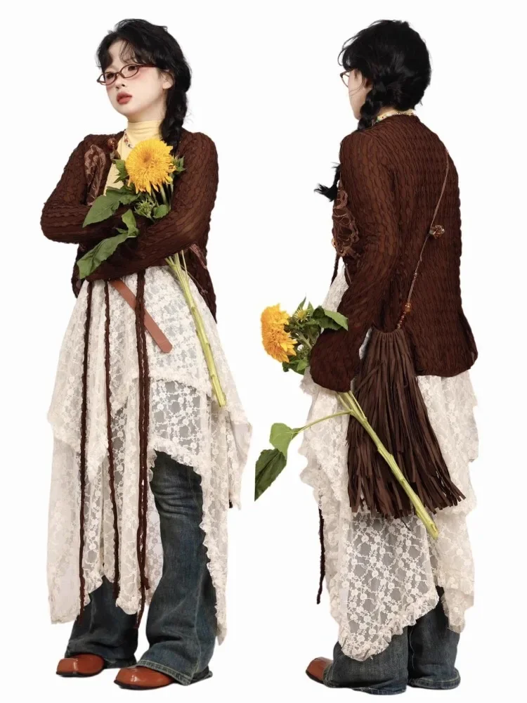 qgtao 2024 Faldas Mujer De Moda Fashion Skirts Women Ruffles Floral Ruffles Jupe Casual Irregular A-line Skirt Korean 2000s Vintage