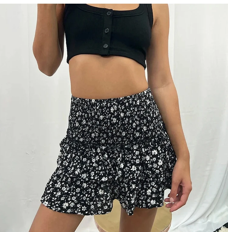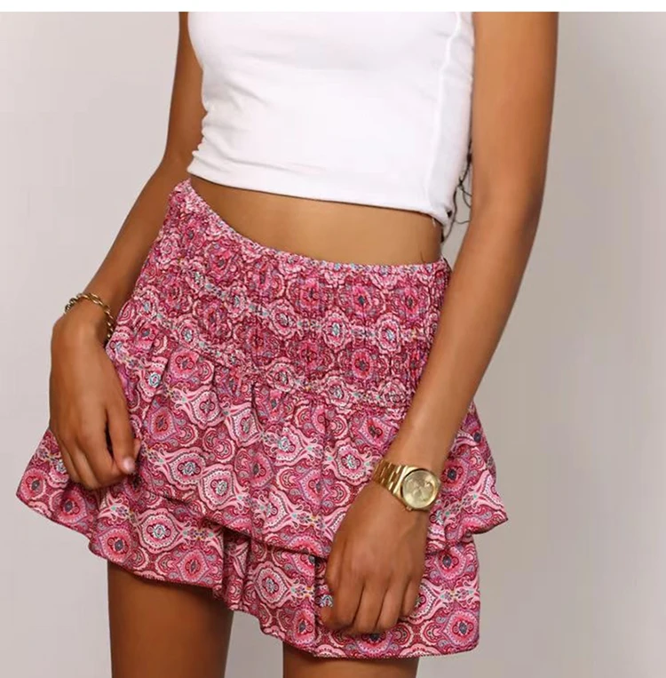 qgtao 2024 Hot Selling Womens Sexy Fashion Skirt Pleated Ruffle Printed Vintage Skirt For Ladies Vestido De Mujer