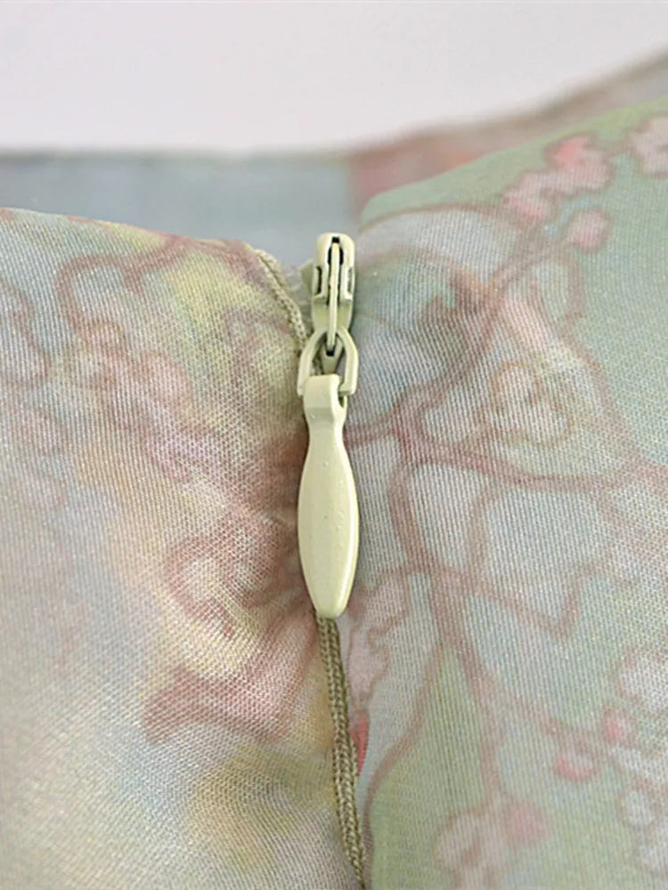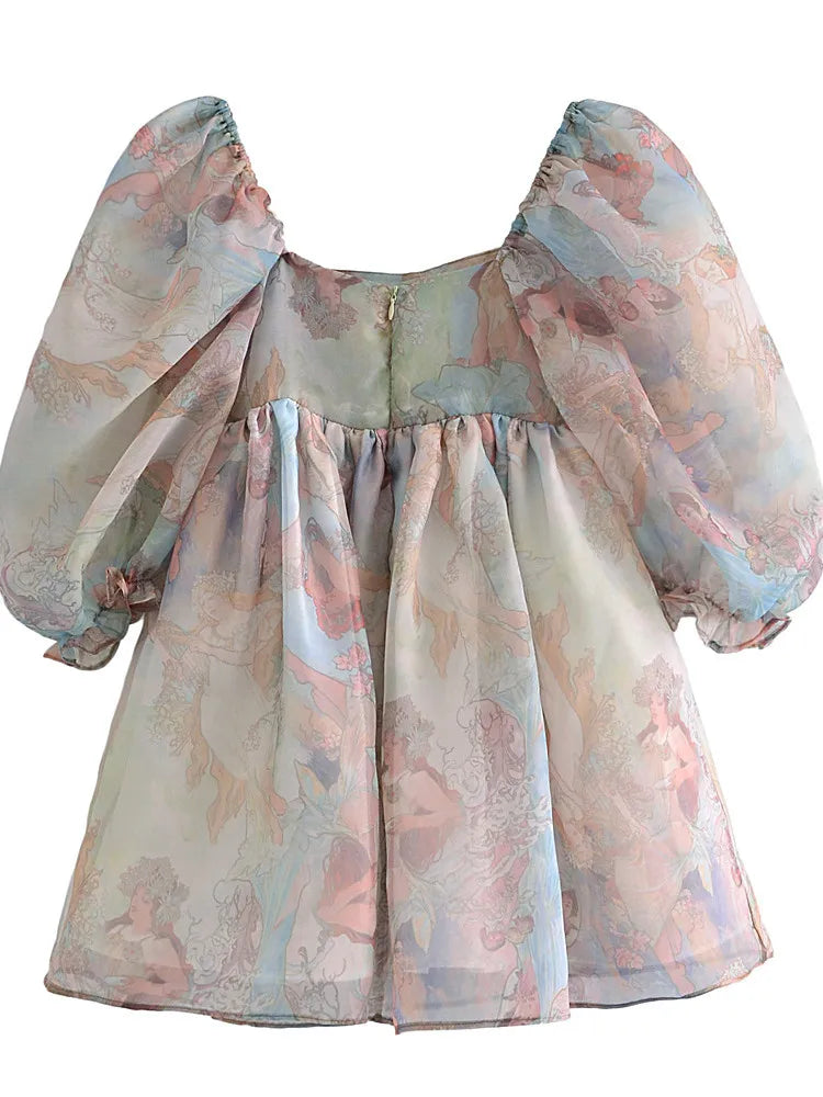 qgtao 2024 Princess Vintage Tie dye Beauty Girl Print Organza Ball Gown Dress Puff Sleeve Women Swing Mini Dresses Fairy Robe Vestidos
