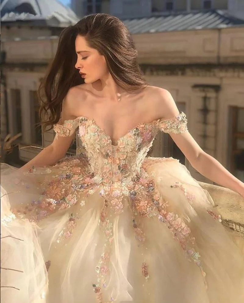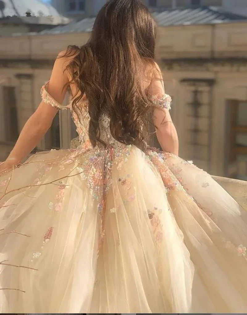 qgtao 3D Flower Sweet Prom Dress Off The Shoulder Charming Graduation Gown 15 dress A Line Champage Party Dress
