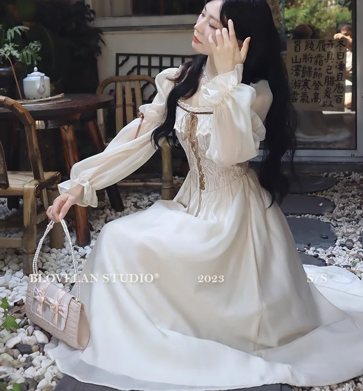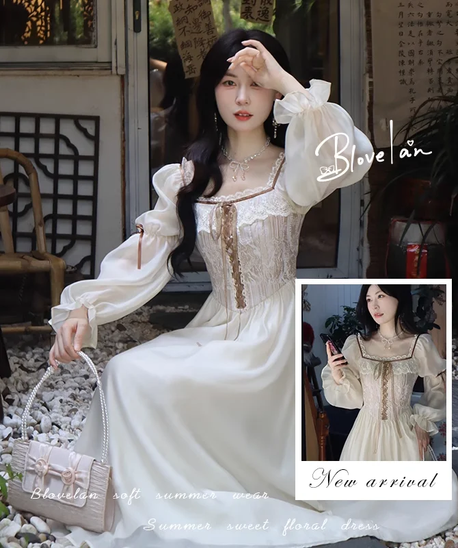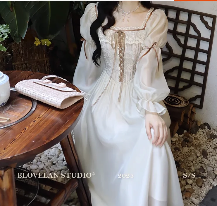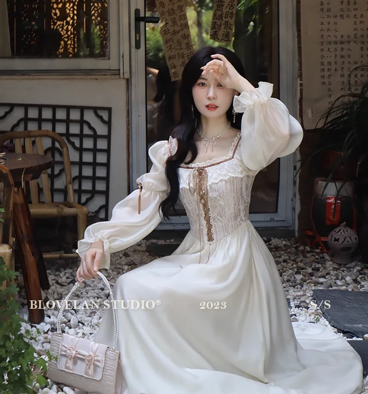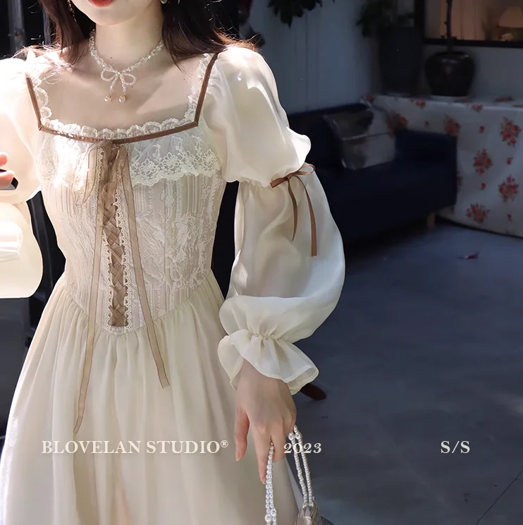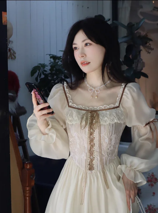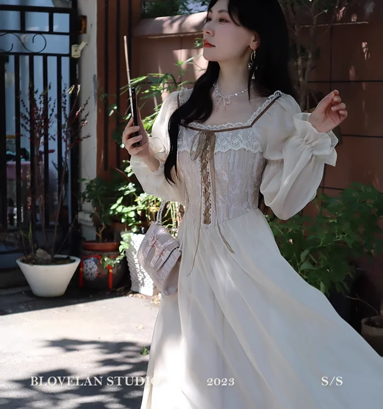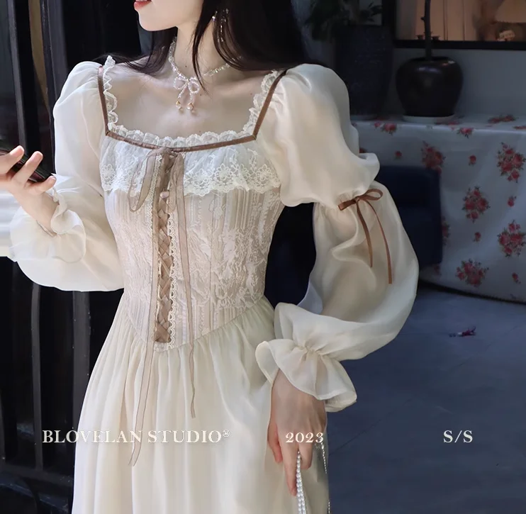 qgtao Autumn Fairy Midi Dresses for Women Lace-up Korean Fashion Slim Wasit A Line Princess Party Dress Vintage Court style Vestidos
