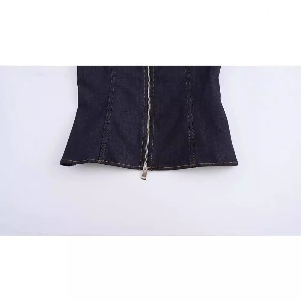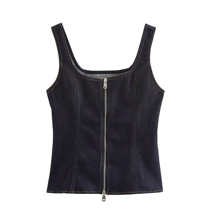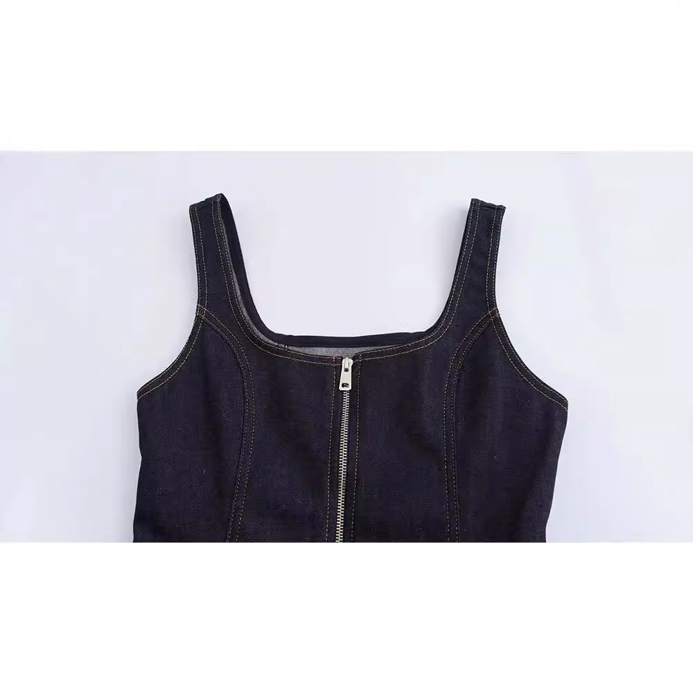 concert outfit Zadata Women's New Style Slim Shoulder Strap Zipper Denim Vest Sleeveless Top 5216244
