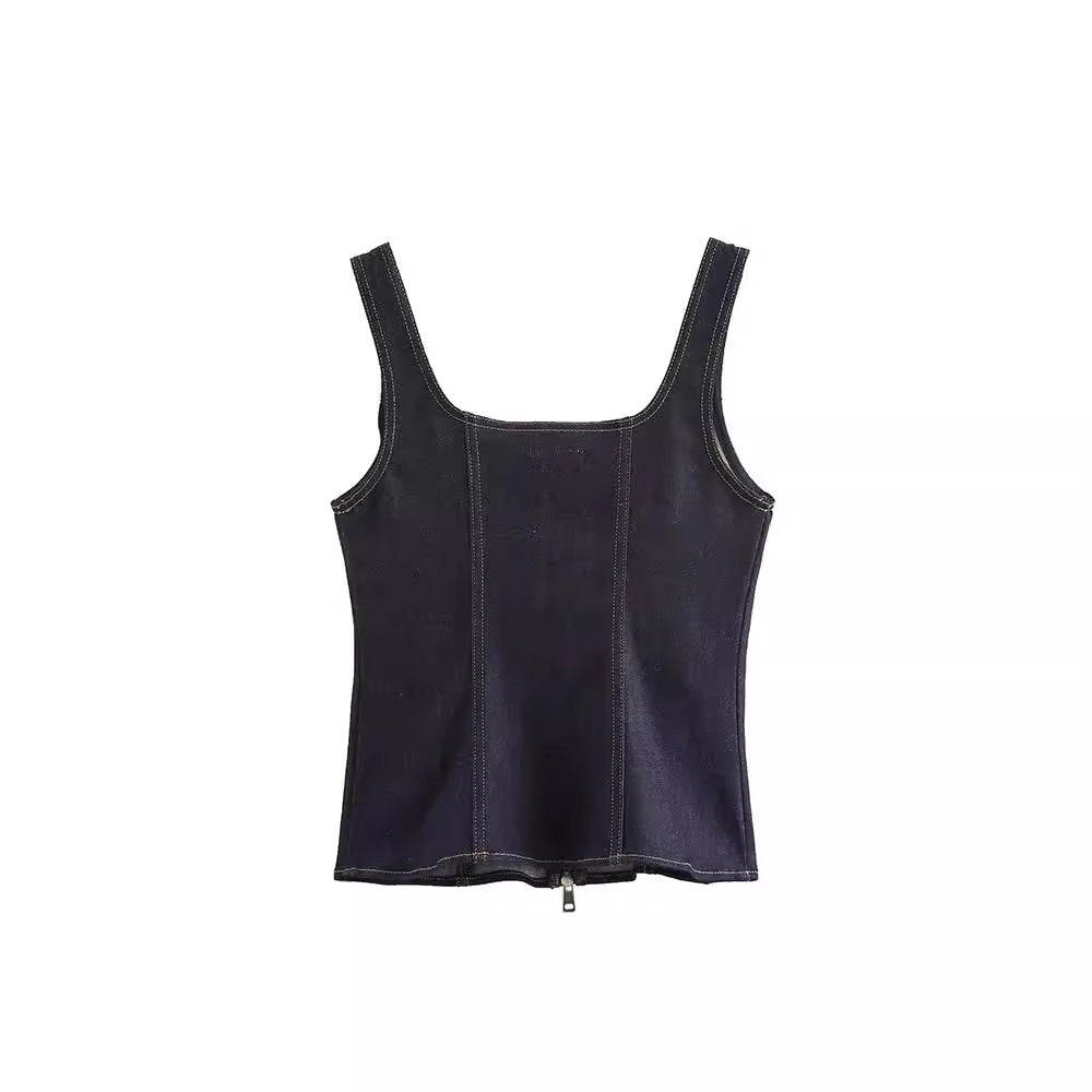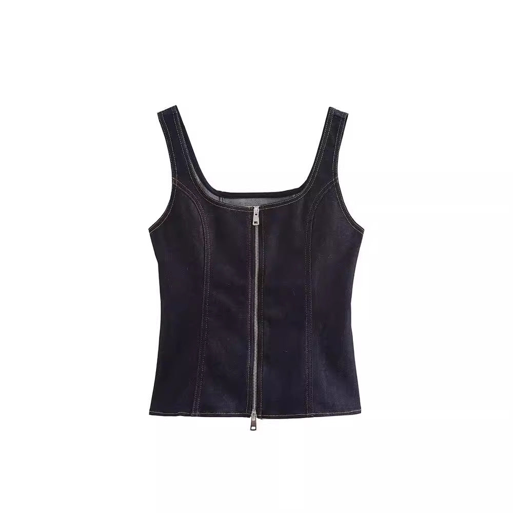 qgtao concert outfit Women's New Style Slim Shoulder Strap Zipper Denim Vest Sleeveless Top
