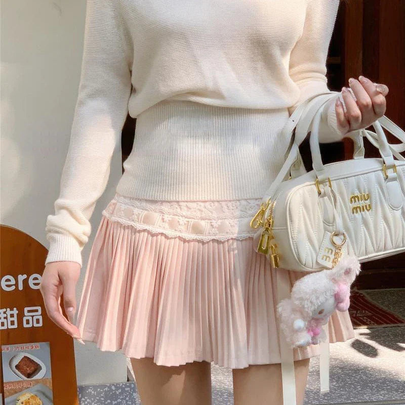 qgtao Coquette Pleated Skirt Women Fairycore Elegant Mini Skirts Kawaii Sweet Lace Up Bow Cute Fanshion Summer Short Skirt