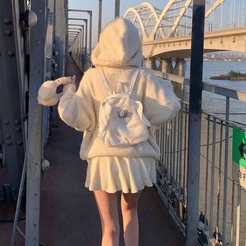 qgtao Coquette White Mini Skirt Women Kawaii Ruffle Patchwork Lace-up Knitted High Waist A-line Fleece Short Skirt Cute Spring