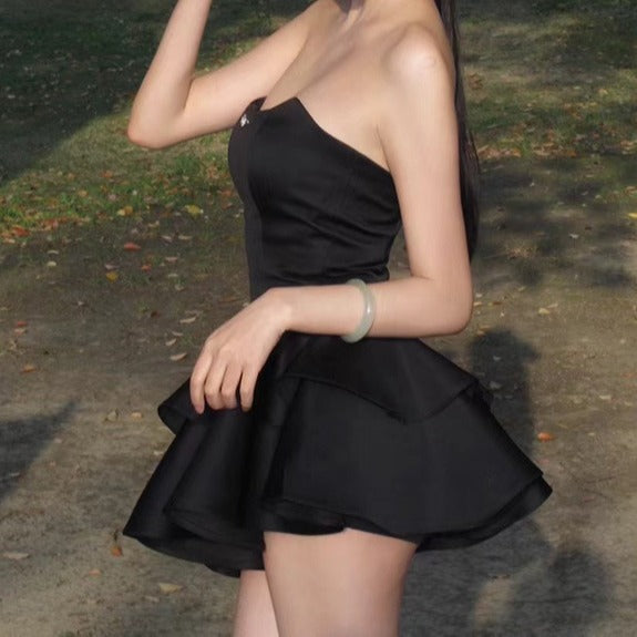 dress to impress outfits Nininio Truffle Chocolate Black Dress Women's Summer Tube Top Dress Irregular Cake Skirt Pettiskirt
