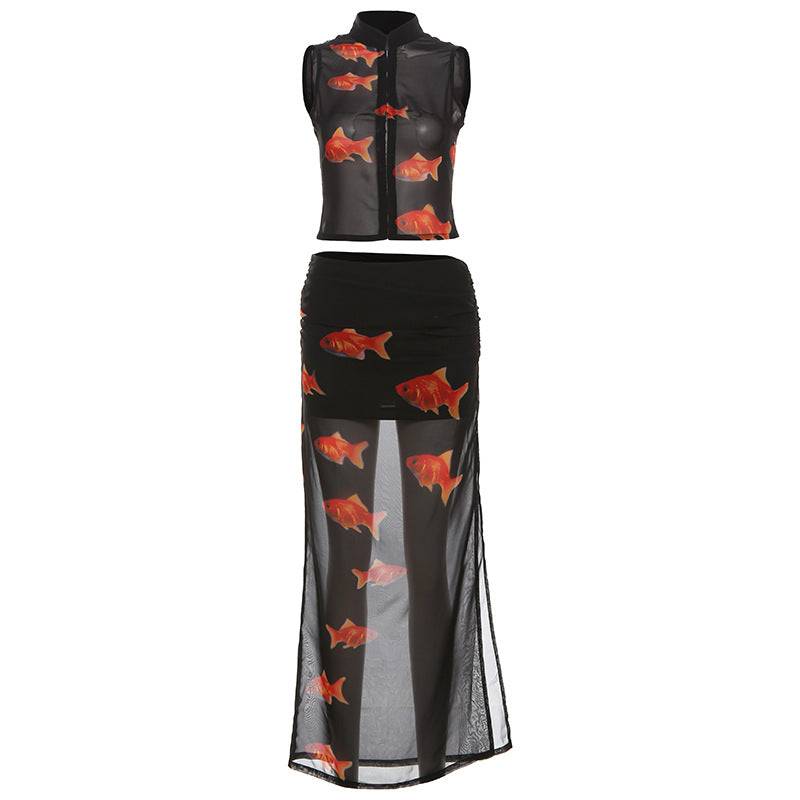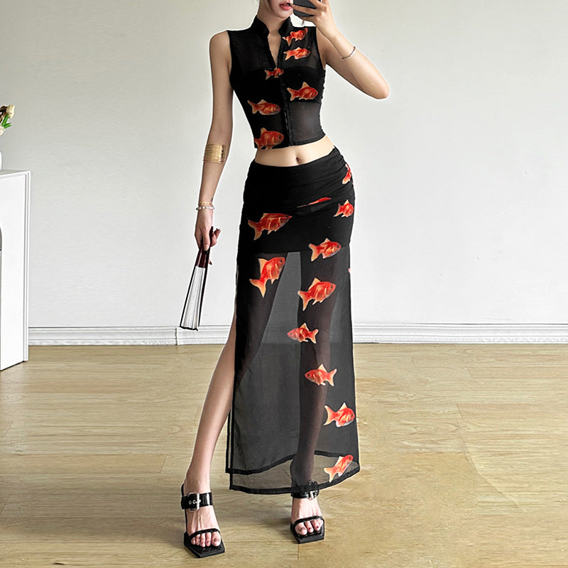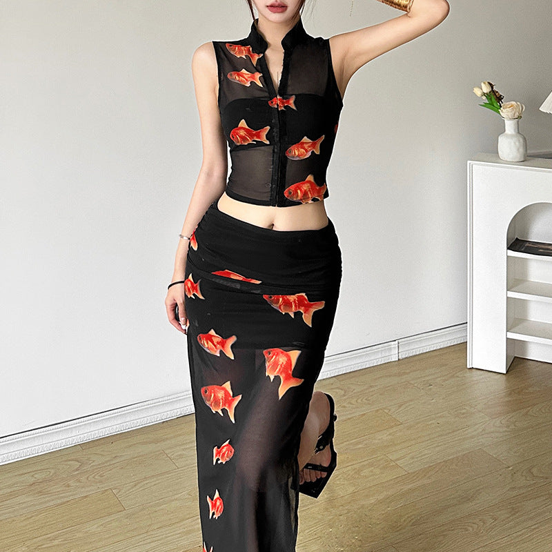 dti outfits 2024 Style Summer New Women's Solid Color Slim Sleeveless Top Fashion Low Waist Skirt Suit