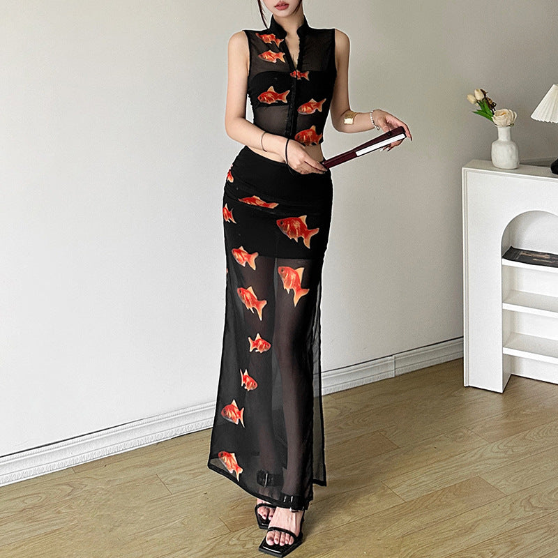 qgtao dti outfits 2024 Style Summer New Women's Solid Color Slim Sleeveless Top Fashion Low Waist Skirt Suit
