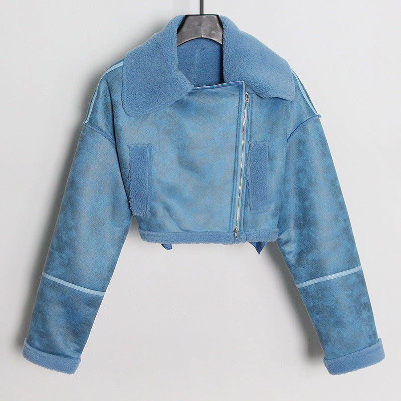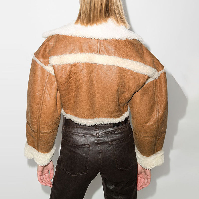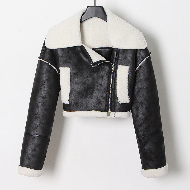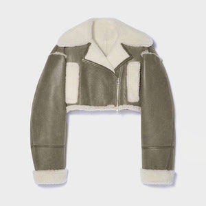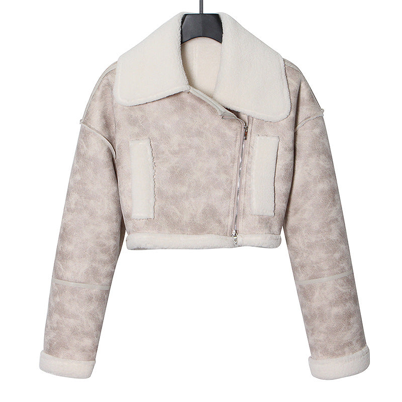 dti outfits Fashionable Short Woolen Coat 2024 Spring New Lapel Long Sleeve Zipper Women's Warm Lamb Wool Top