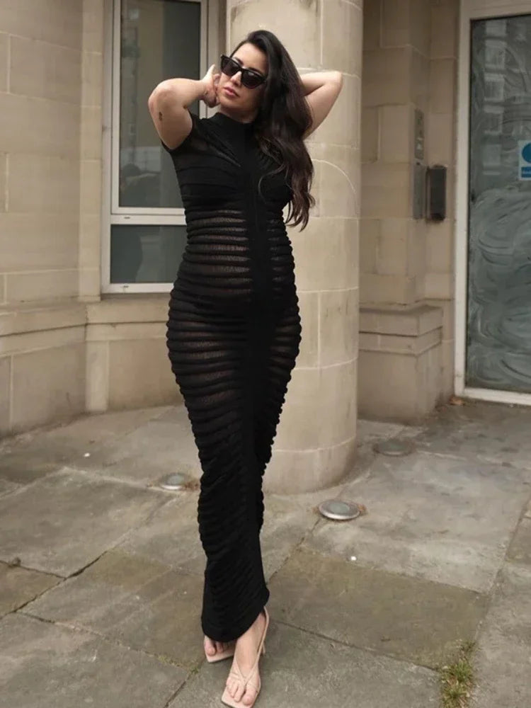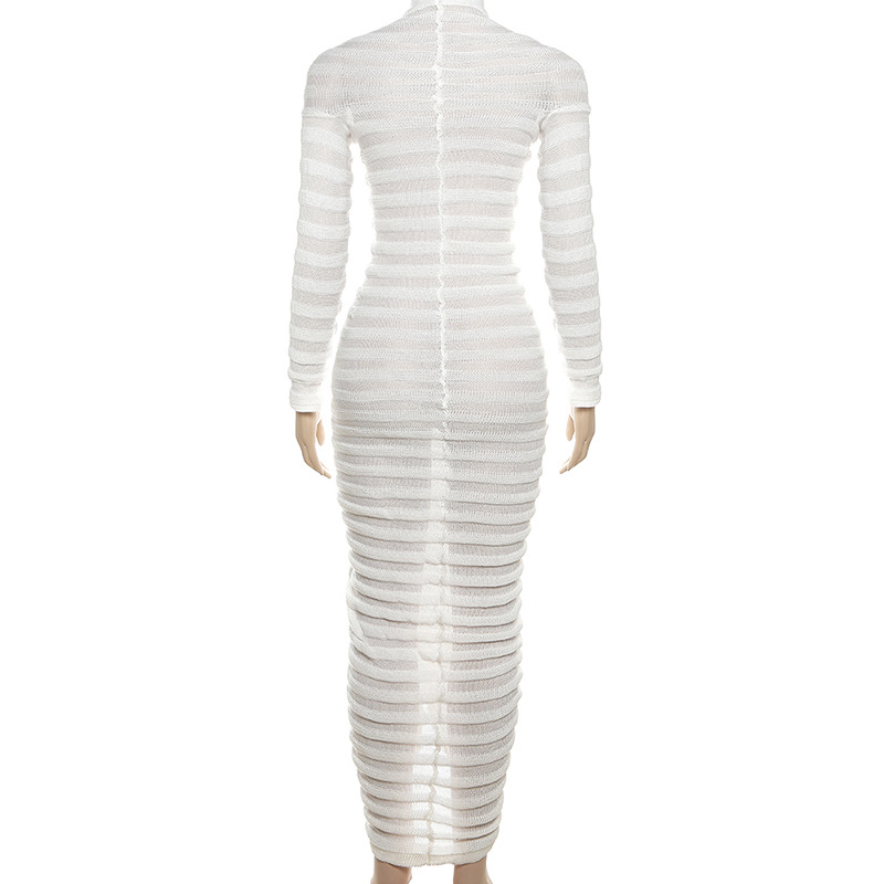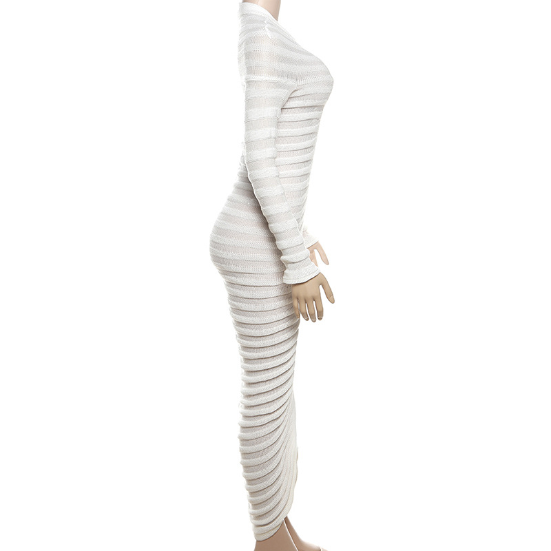 qgtao Elegant Bodycon Knitted Dress Autumn See Through White Dress Short Sleeve Sexy Party Evening Maxi Dresses for Women 2024