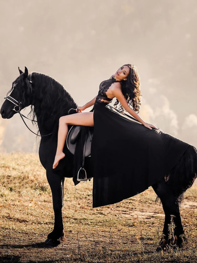 qgtao Elegant Party Evening Maxi Dresses for Women 2024 See Through High Split Red Lace Dress Sexy Backless Summer Long Black Dress