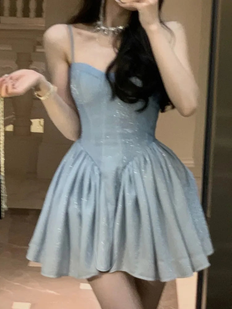 qgtao Elegant Party Short Dresses for Women 2023 New Summer Vintage Spaghetti Strap Casual Female Clothes Wedding Birthday Midi Dress