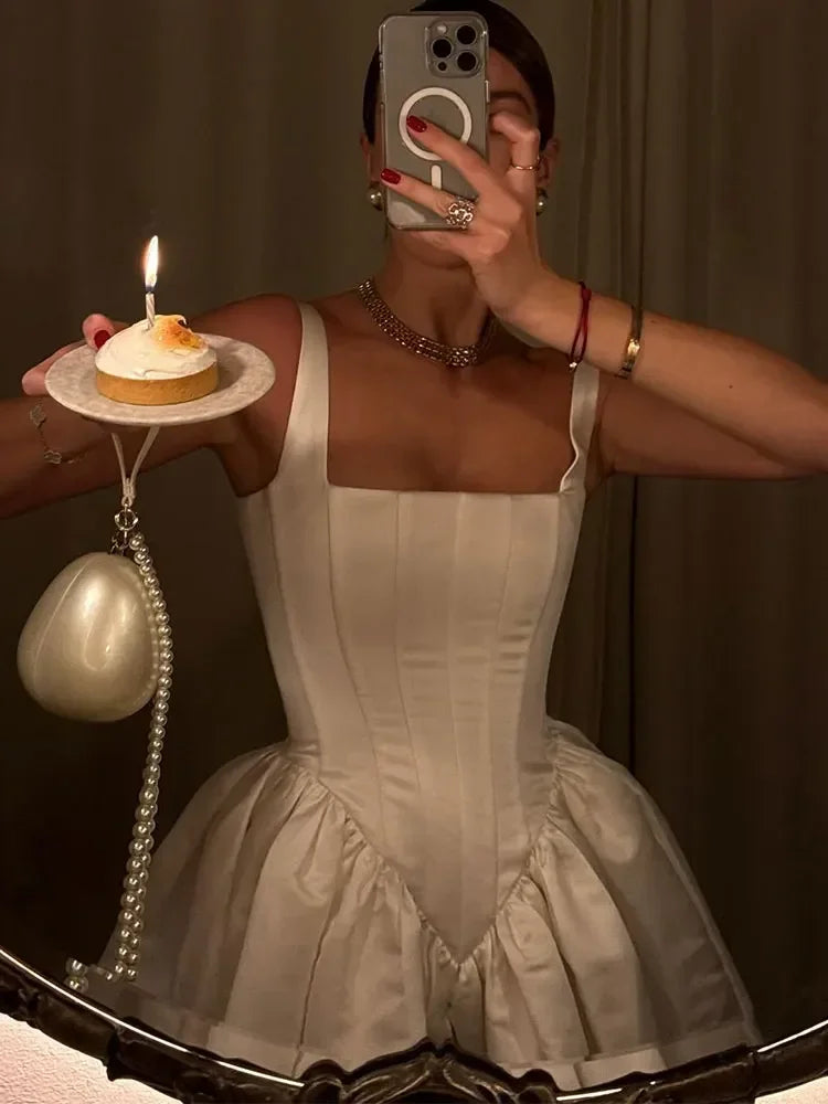 qgtao Elegant White Pleated Strap Mini Dress Women Sexy Sleeveless Backless High Waist Dresses 2024 Chic Lady Evening Party Vestidos