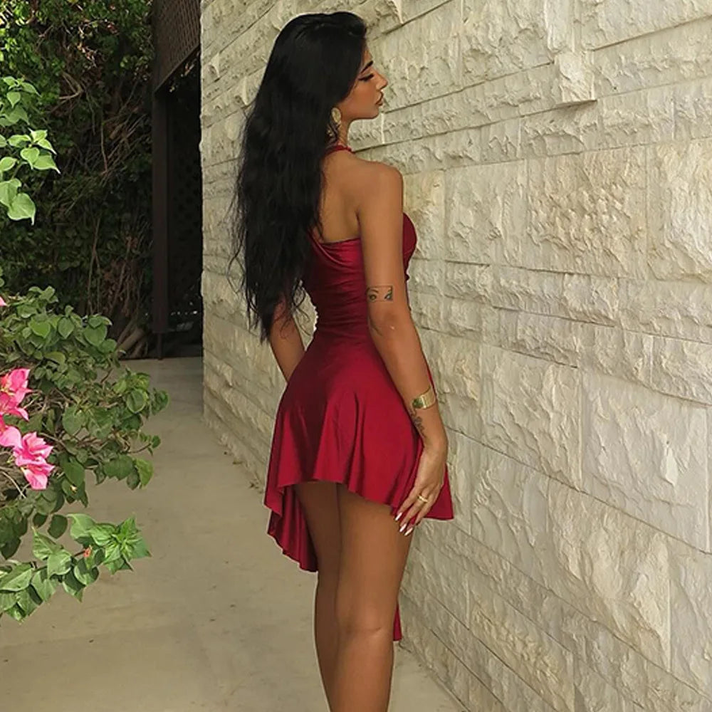 qgtao Fashion Sexy Backless Halter Mini Dress Club Outfits for Women Elegant Sleeveless Ruched Dresses Party Vestido