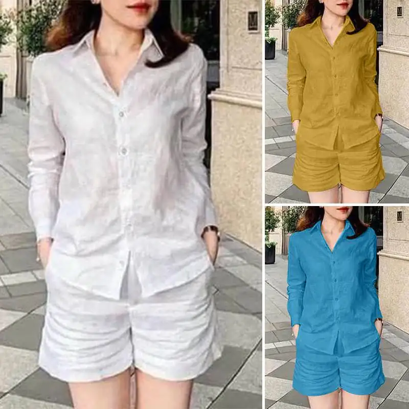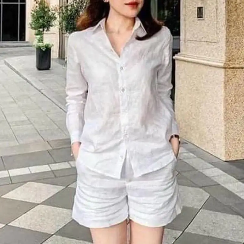 qgtao Fashion Women Long Sleeve Shirt Short Sets Elegant Spring Work Pants Sets 2PCS Casual Solid Urban Tracksuit Outifits 2024