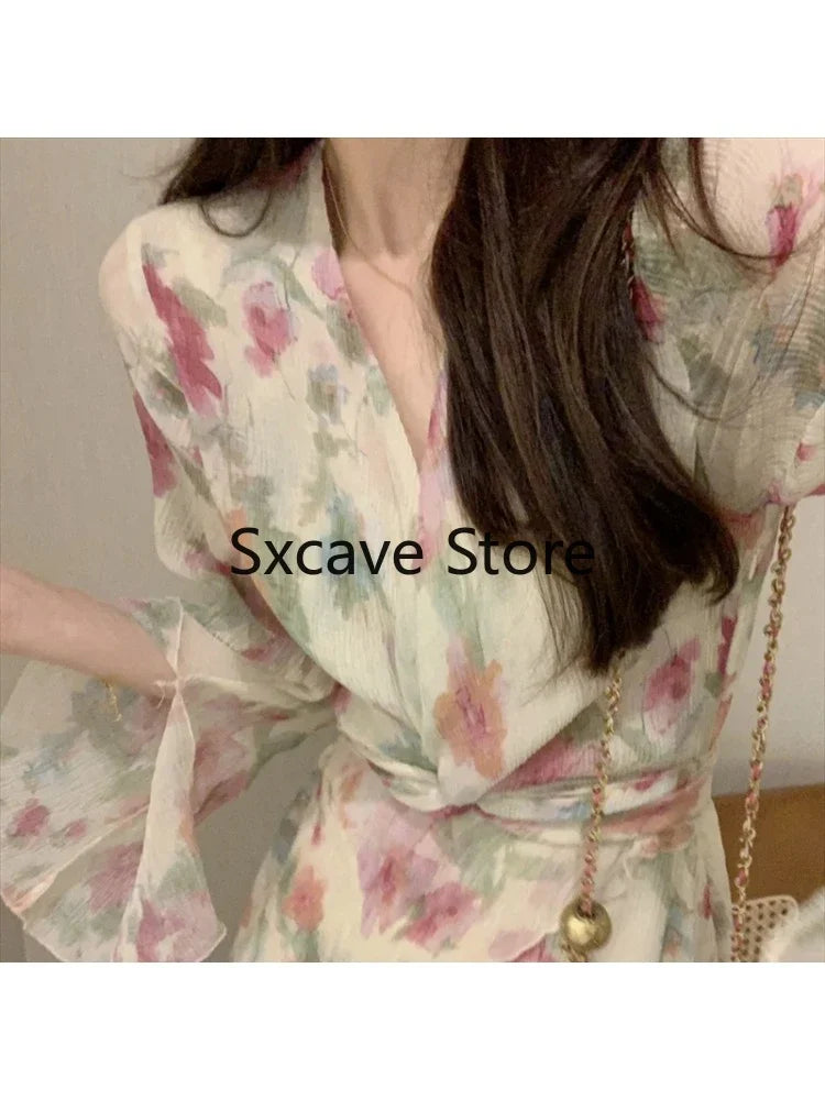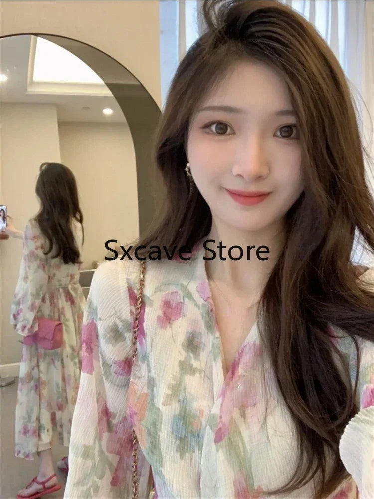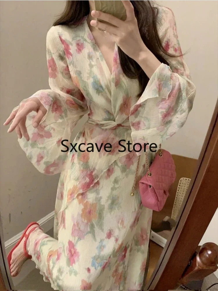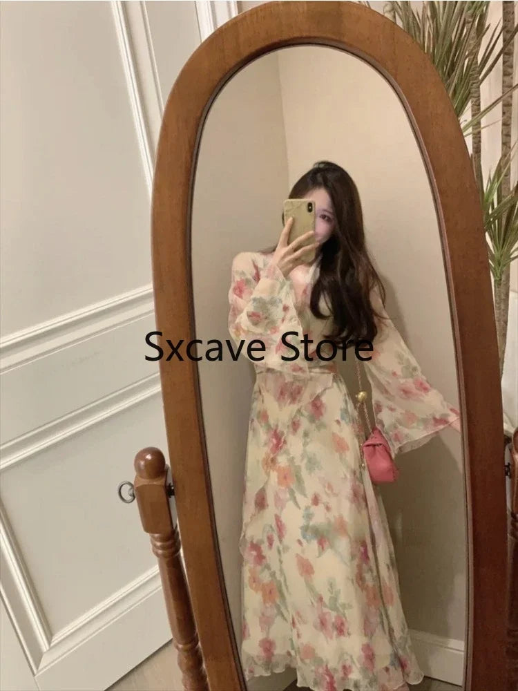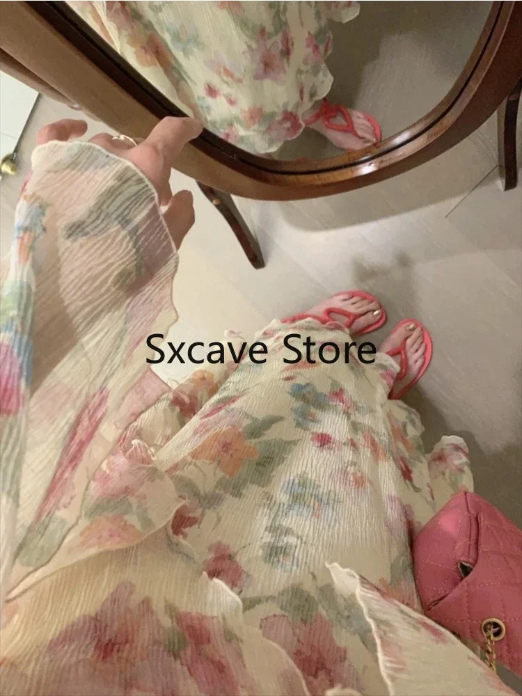 qgtao French Sweet Floral Midi Dress Women 2024 Summer Design Elegant Vintage Dress Office Lady Even Party Chiffon Dress Korea Fashion