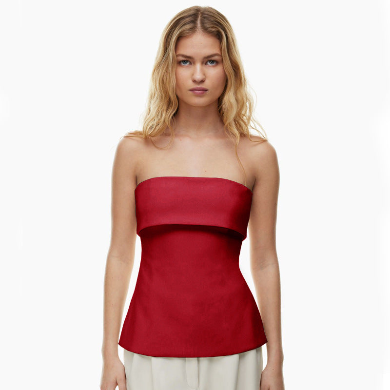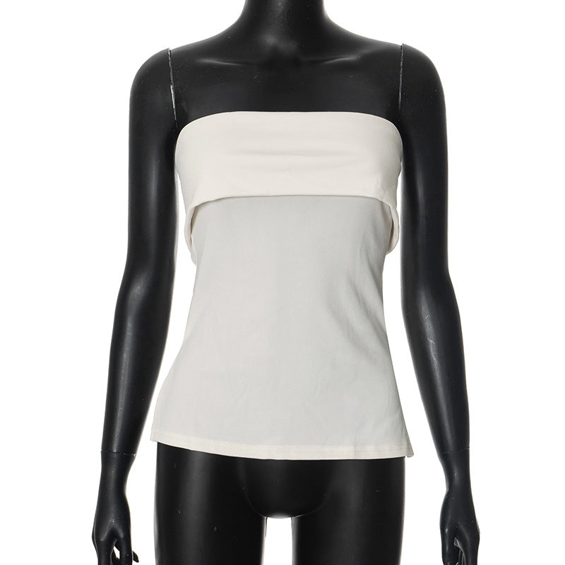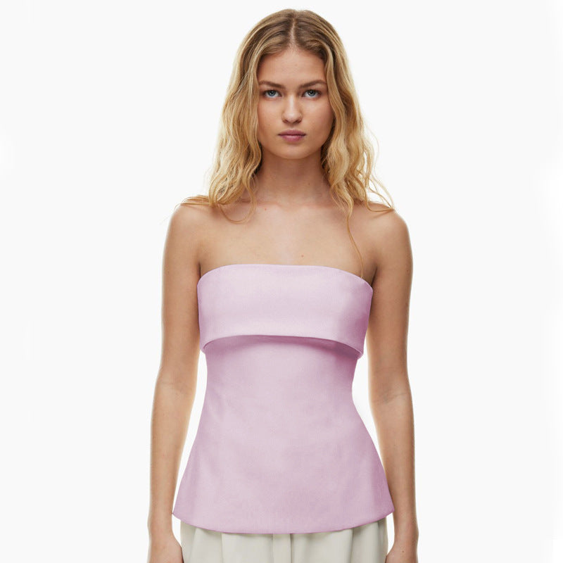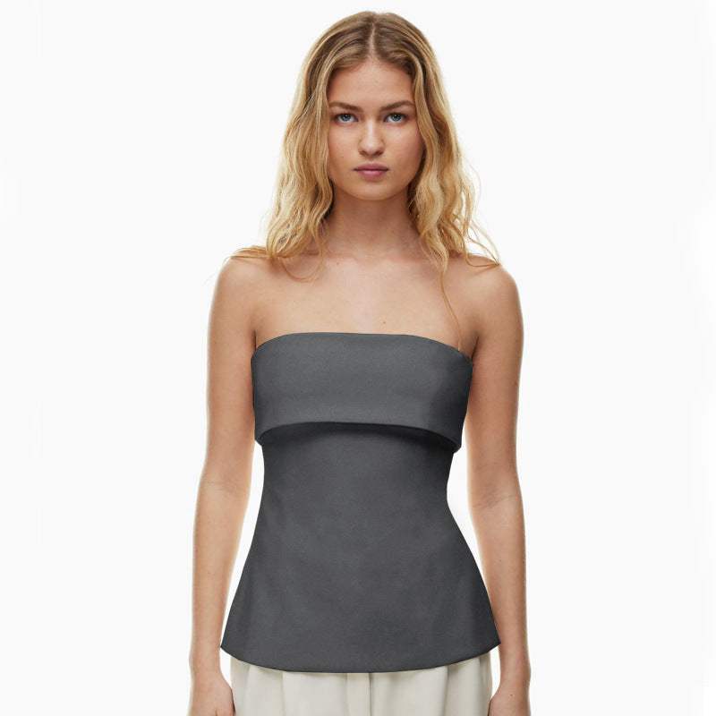 qgtao going out outfits Women's Summer New Solid Color Sleeveless Backless Wide Lapel Slit Tube Top Sexy Top for Women