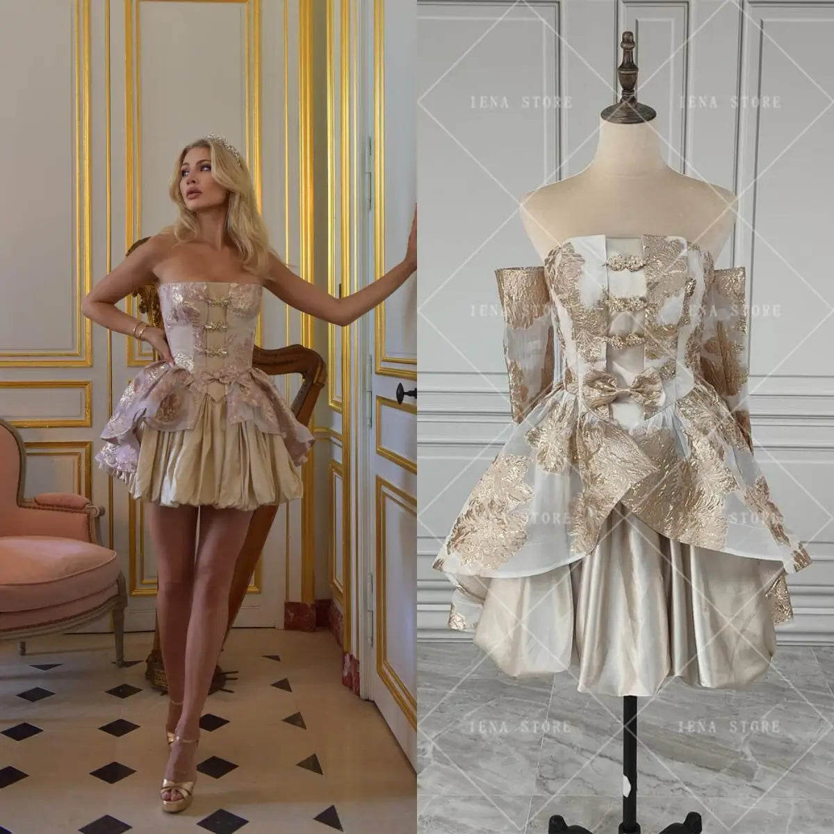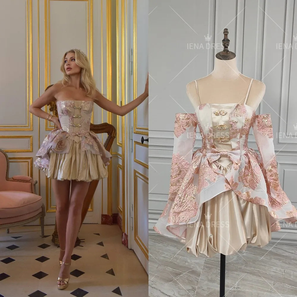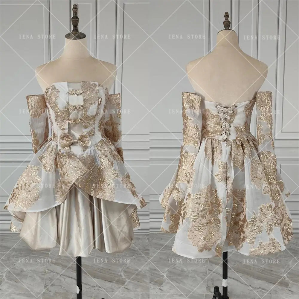 qgtao Golden Short Corset Evening Party Dress with Long Gloves Gothic Court Style Strapless Mini Cocktail Prom Gown Homecoming Dresses