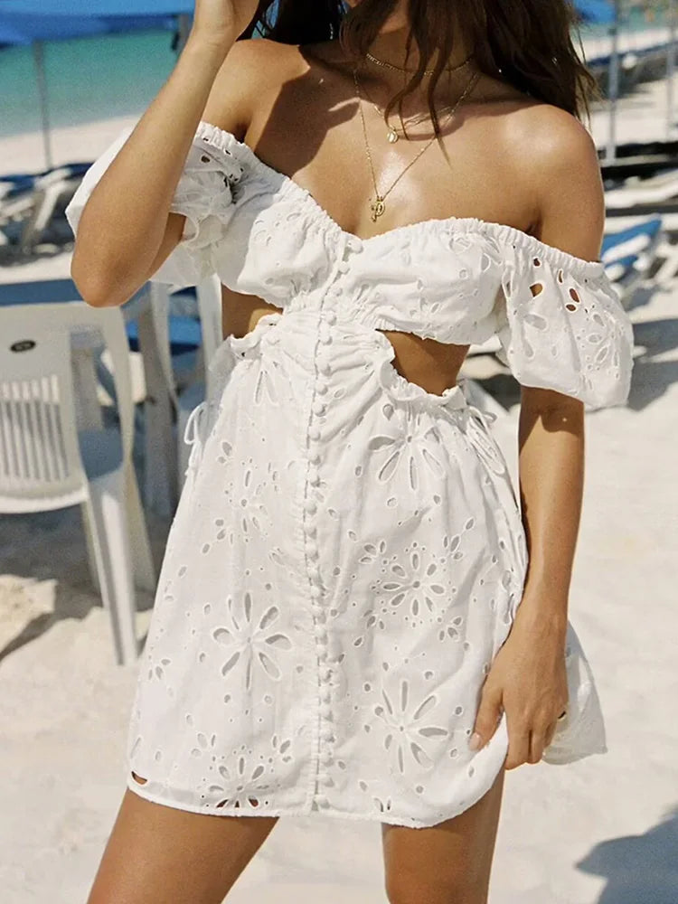 qgtao Gypsylady White Boho Sexy Mini Dress Summer Vocation Puff Sleeve Hollow Out Backless Ruffles Party Women Dresses Ladies Vestidos