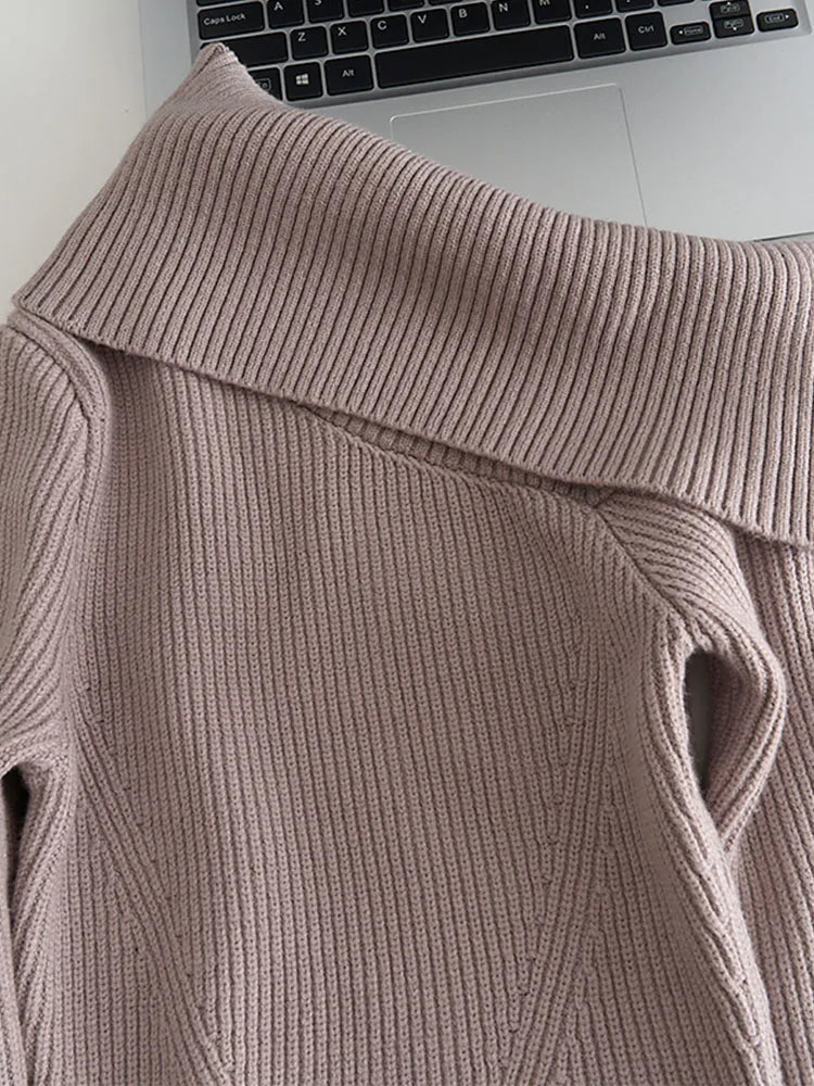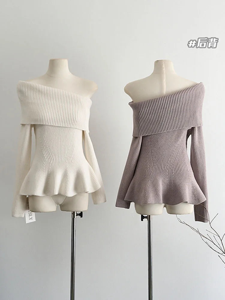 qgtao High Quality Knitted Pullovers Gyaru Autumn Winter Off Shoulder Slash Neck Sweater Tide Solid Jumper Formal Occasion High Street