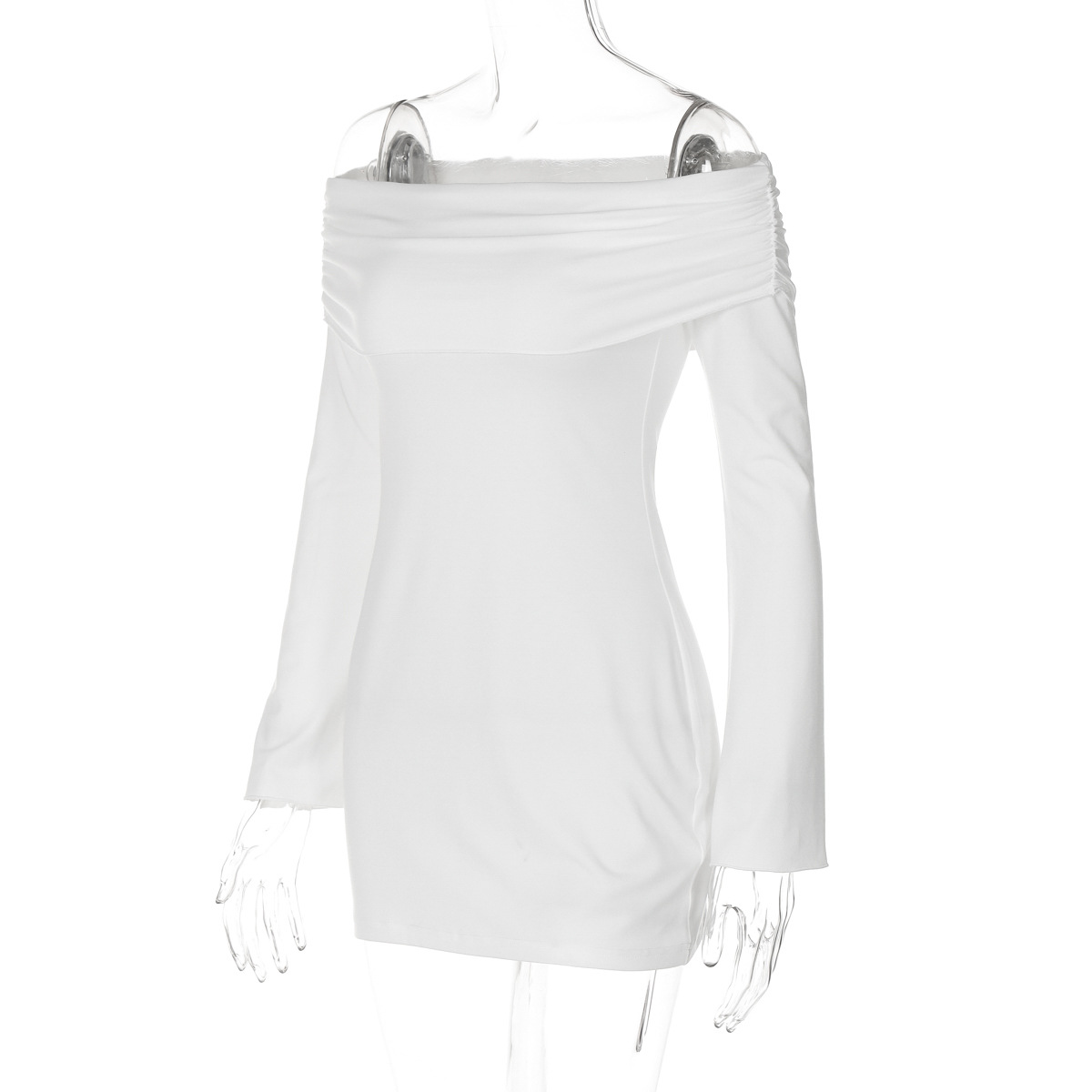qgtao Off The Shoulder Long Sleeve Dresses For Women 2024 Fashion Autumn Y2K Clothes Sexy Mini White Dress Black Outfits