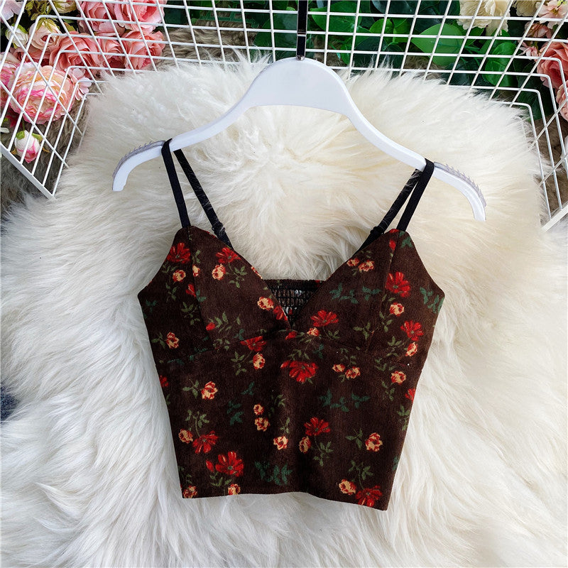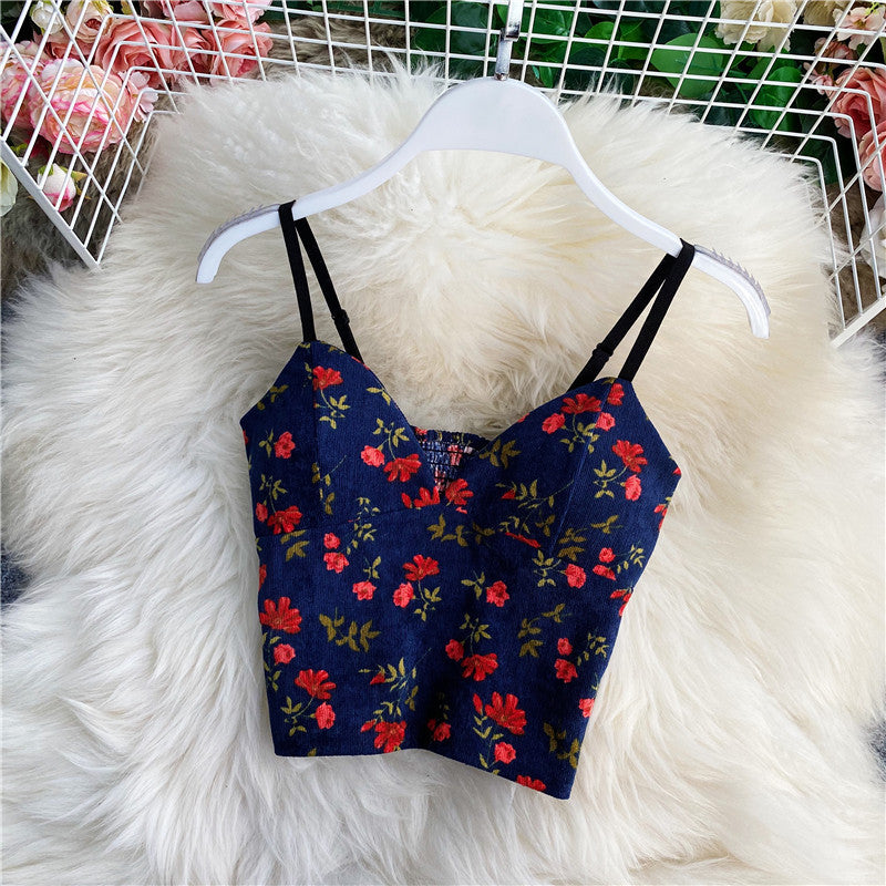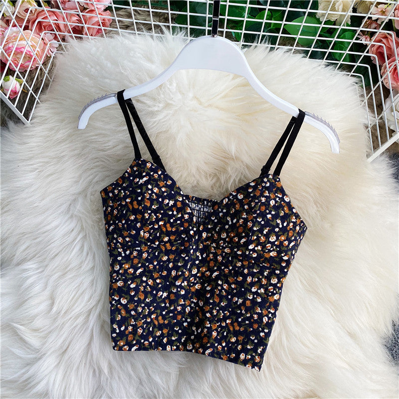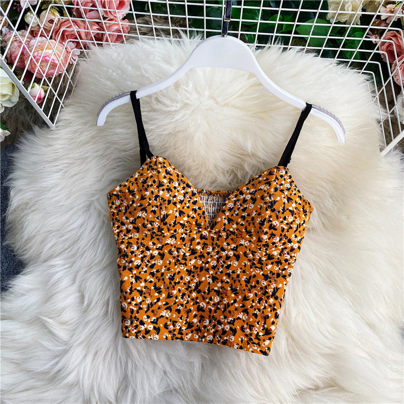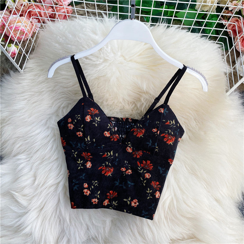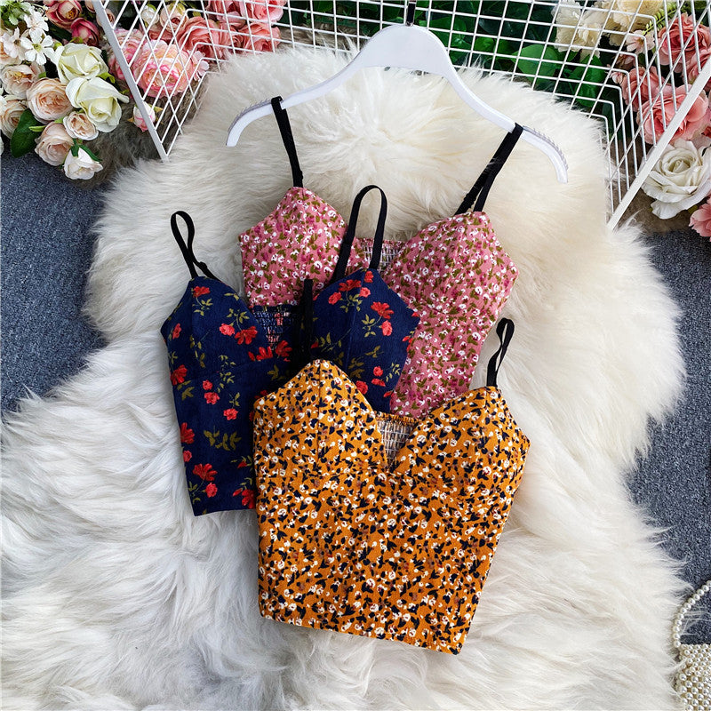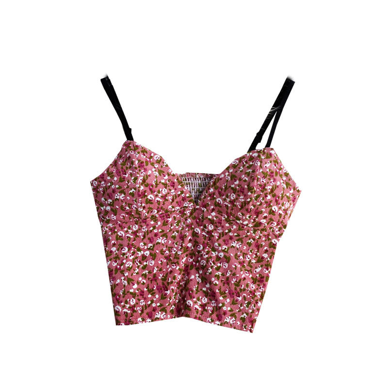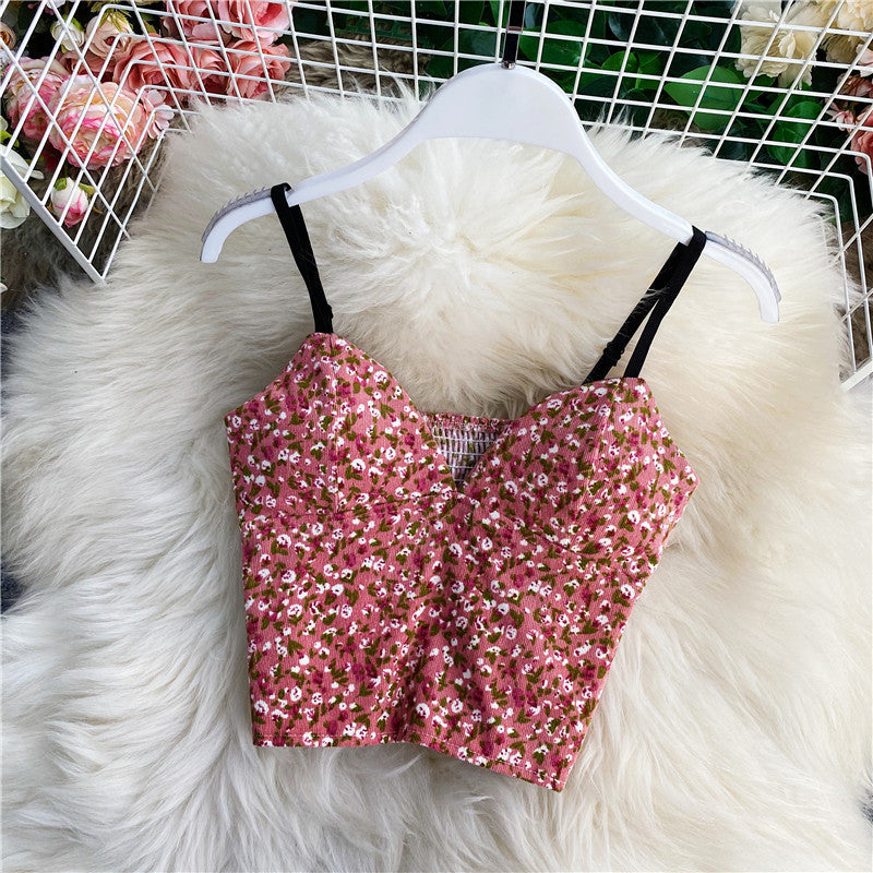 outfit inspo Small Floral V-neck Short Sexy Tube Top off-the-Shoulder Slim Inner Strap Sleeveless Wrapped Chest Vest Outer Top for Women