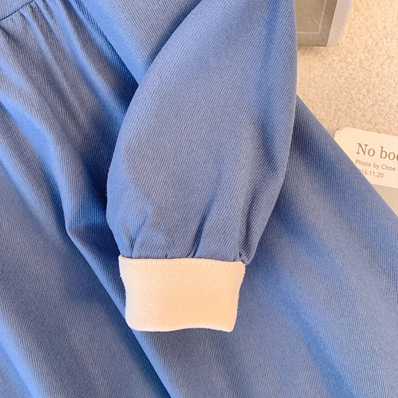 qgtao Plus-size women's casual dress with navy collar Blue decal skirt Bow Tie preppy French maxi Commuter party Home travel wear