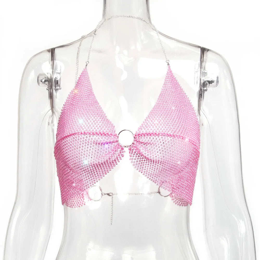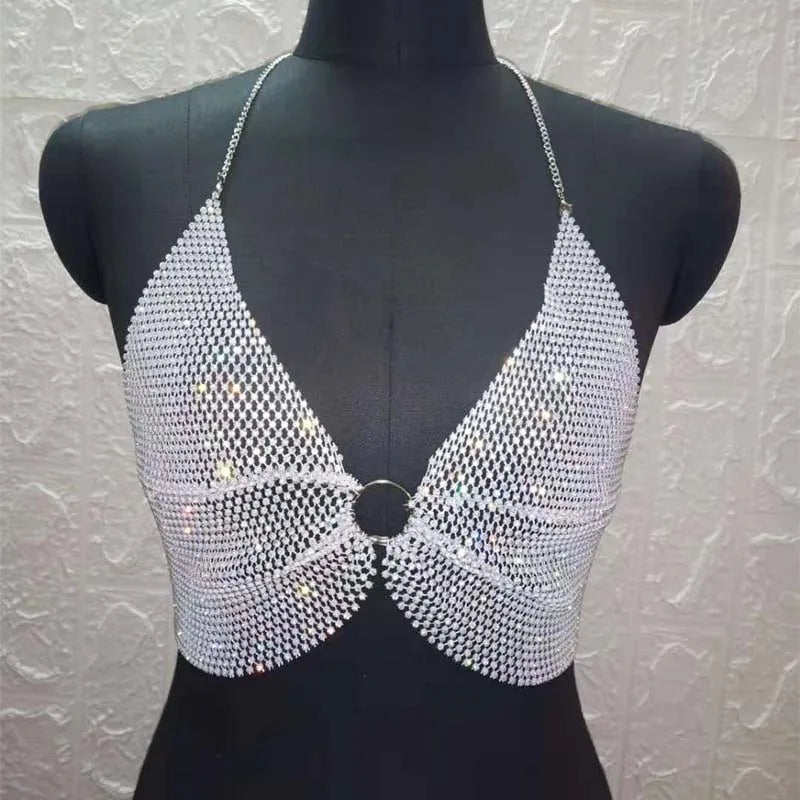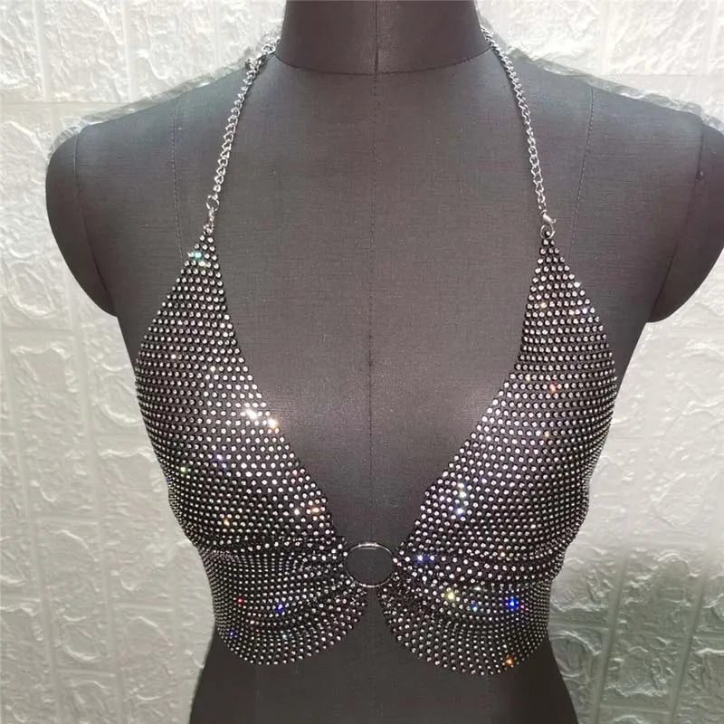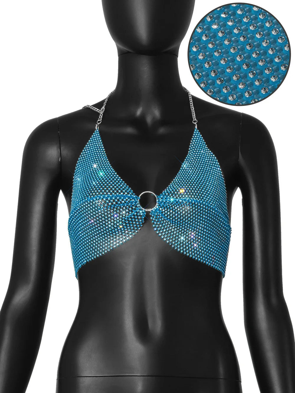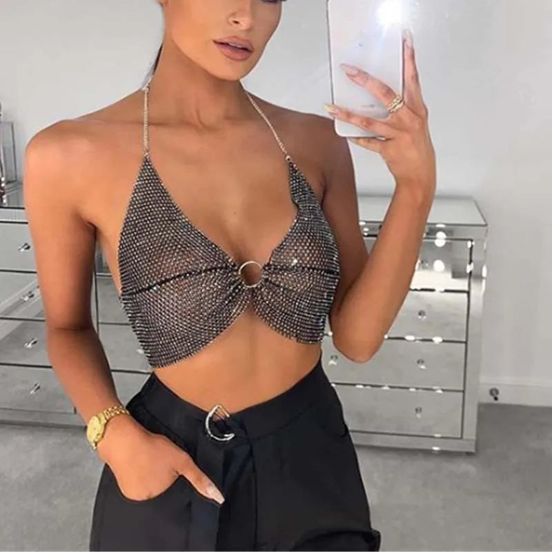 qgtao Shiny Rhinestone Crop Top Women Shining Backless Mesh Sexy Festival Top Party Nightclub Vest cropped Bra Top feminino