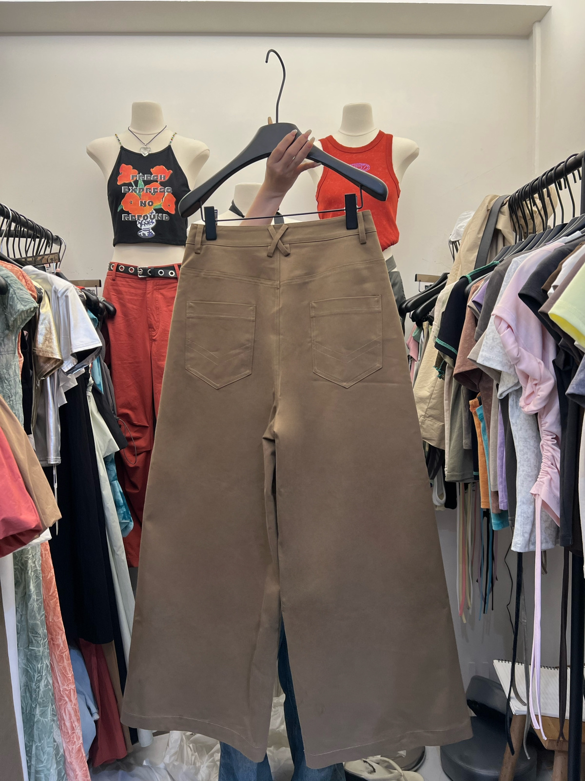 suede jacket outfit MM. Fish Fashionable Retro High Street Suit Pants Loose Wide Leg Lazy Solid Color Straight Casual Pants K335