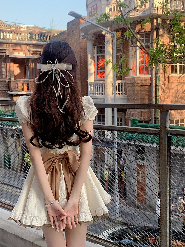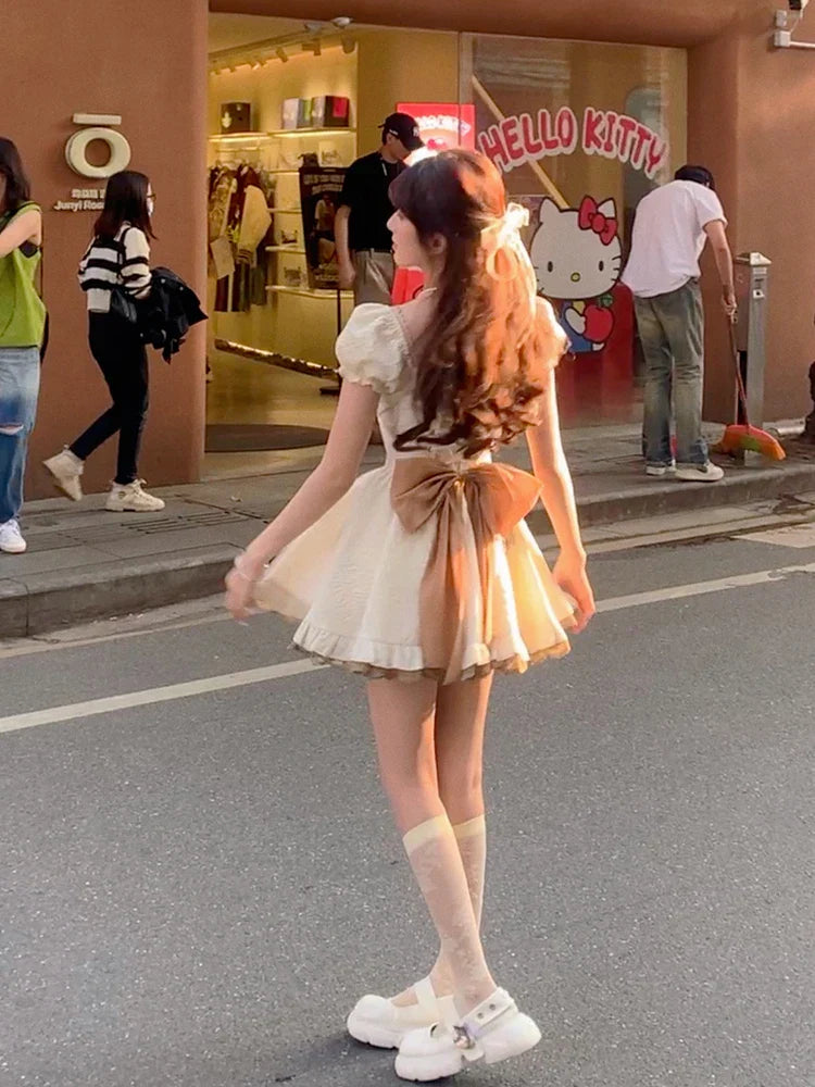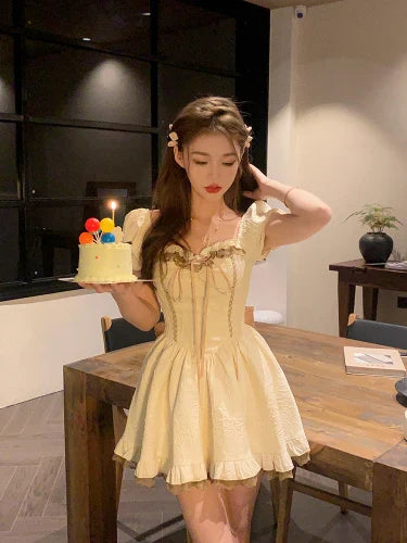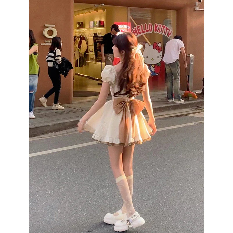 qgtao Summer Bow Vintage Kawaii Dress Women Lace Designer Party Mini Dress Female Casual Korean Fashion Y2k Lolita Retro Dress 2024