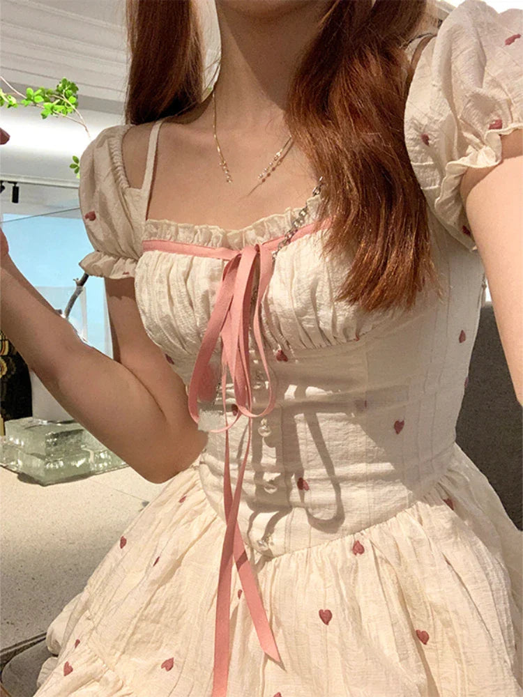 qgtao Summer Floral Short Party Dress Women Casual Kawaii Clothing Y2k Mini Dress Office Lady Elegant One Piece Dress Korean Chic
