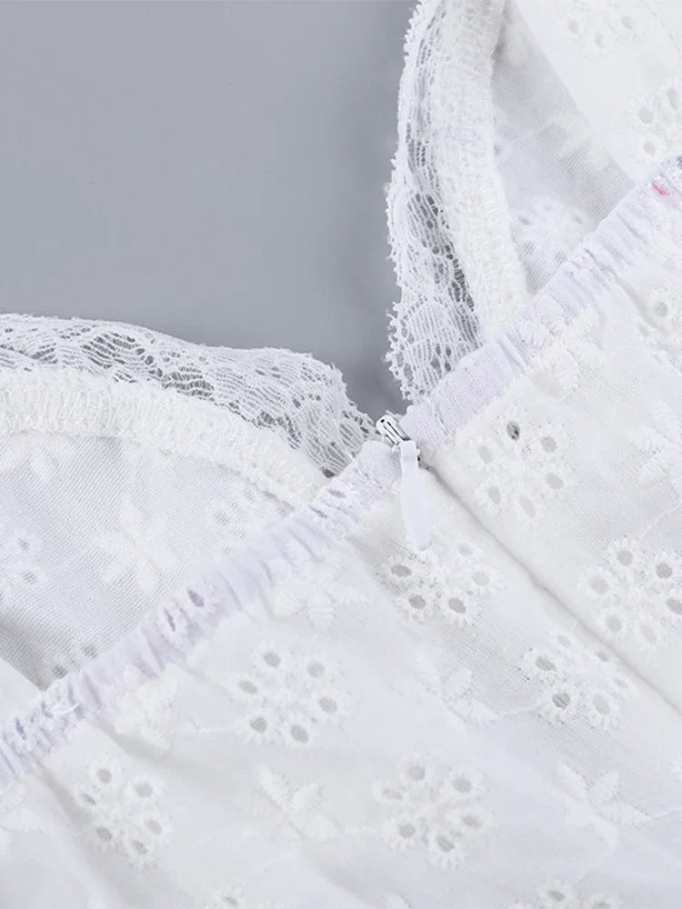 qgtao  -  Summer Hollow Out Chest Wrap Sexy Suspender Dress Women 2024 Elegant V Neck Sleeveless Chic White Mini Robes Lady Party Vestidos