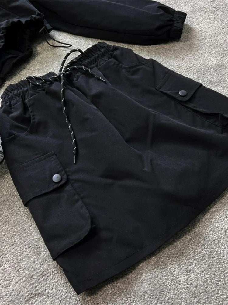 qgtao Techwear Skirt Sets Women Harajuku Hip Hop Y2K Mini High Waist Dress Sets Vintage Elasticity Two Piece Set Sport Outfit