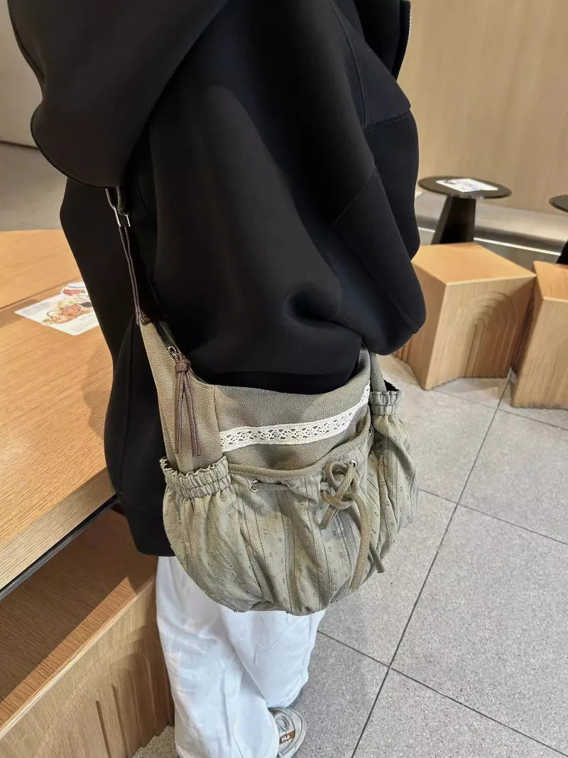 qgtao Vintage Crossbody Bags for Women Korean Style Fashion Canvas Tote Bag Versatile Casual Large Capacity Shoulder Bag