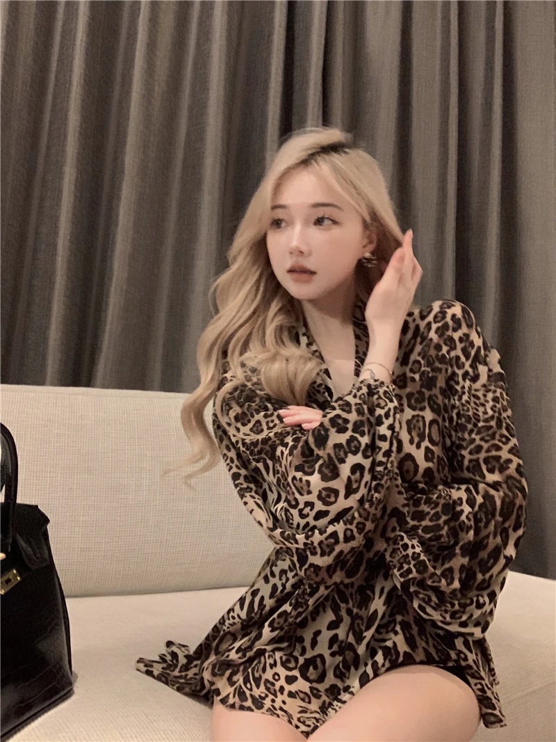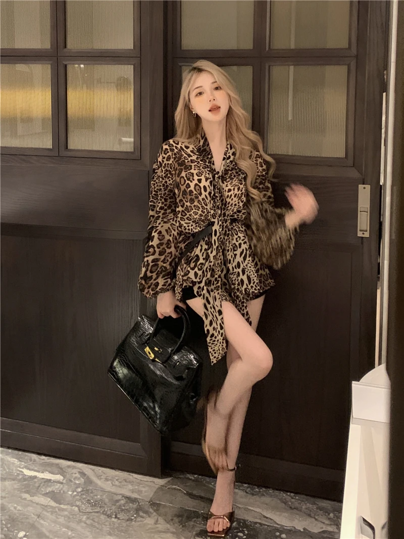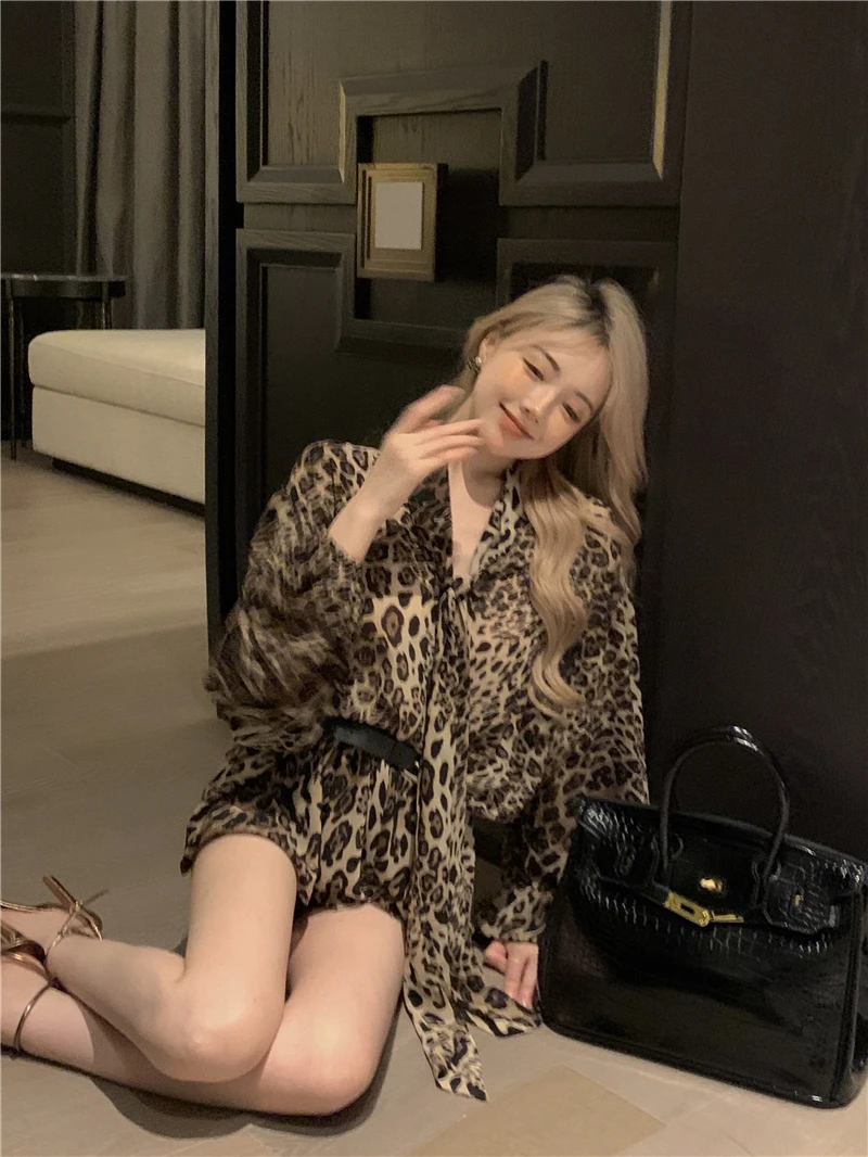 qgtao - Vintage Leopard Print Shirt Women V-neck Long Sleeve Chiffon Blouse Female Summer Loose French Style Elegant Tops Chic