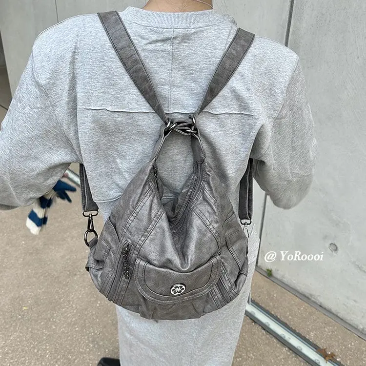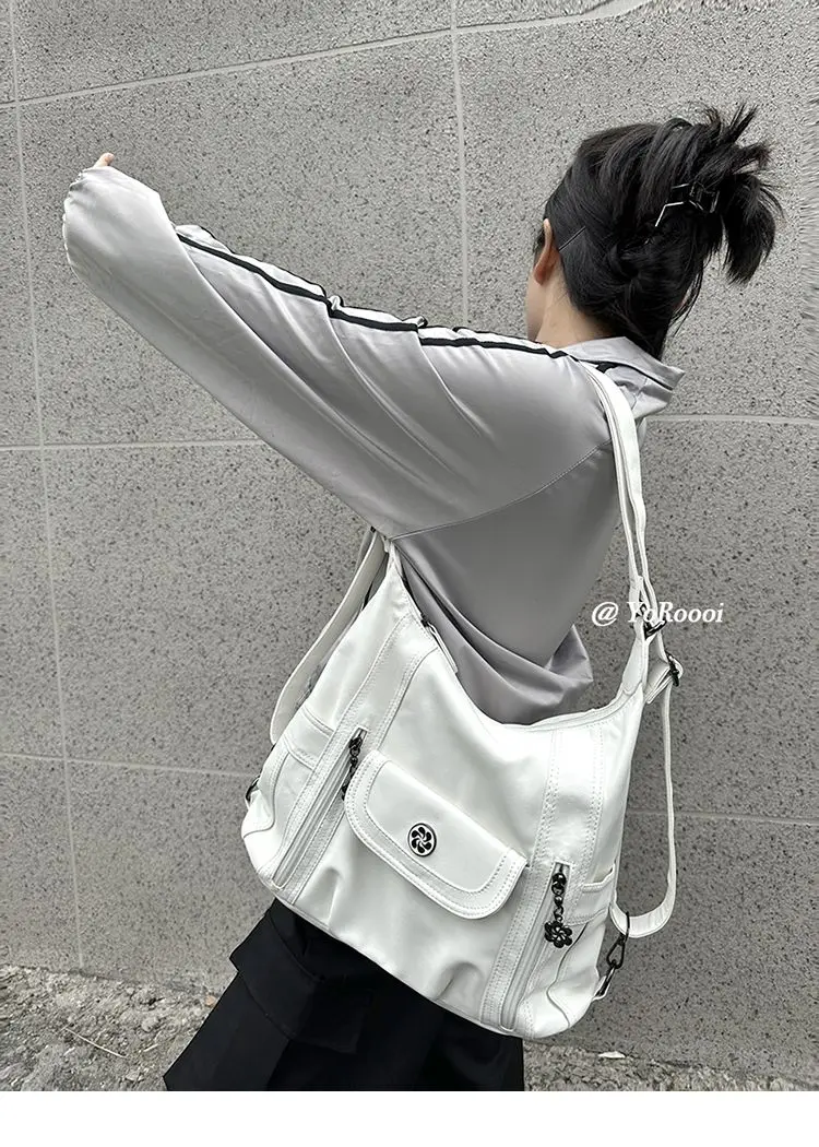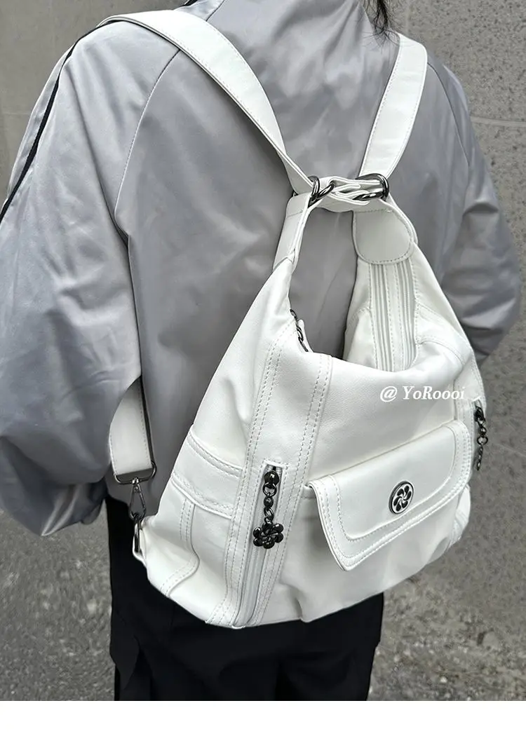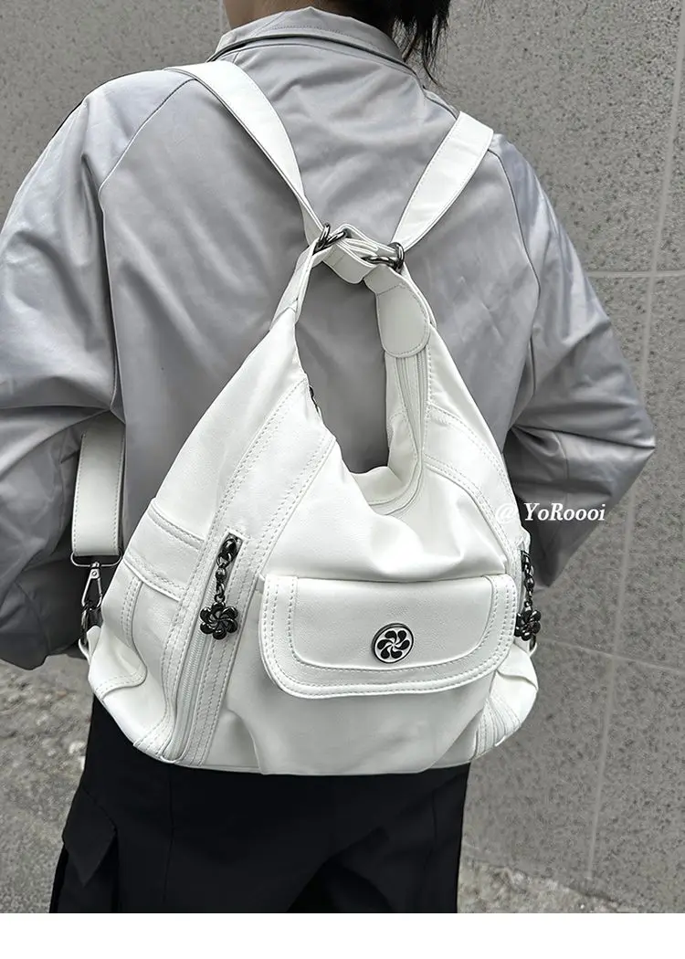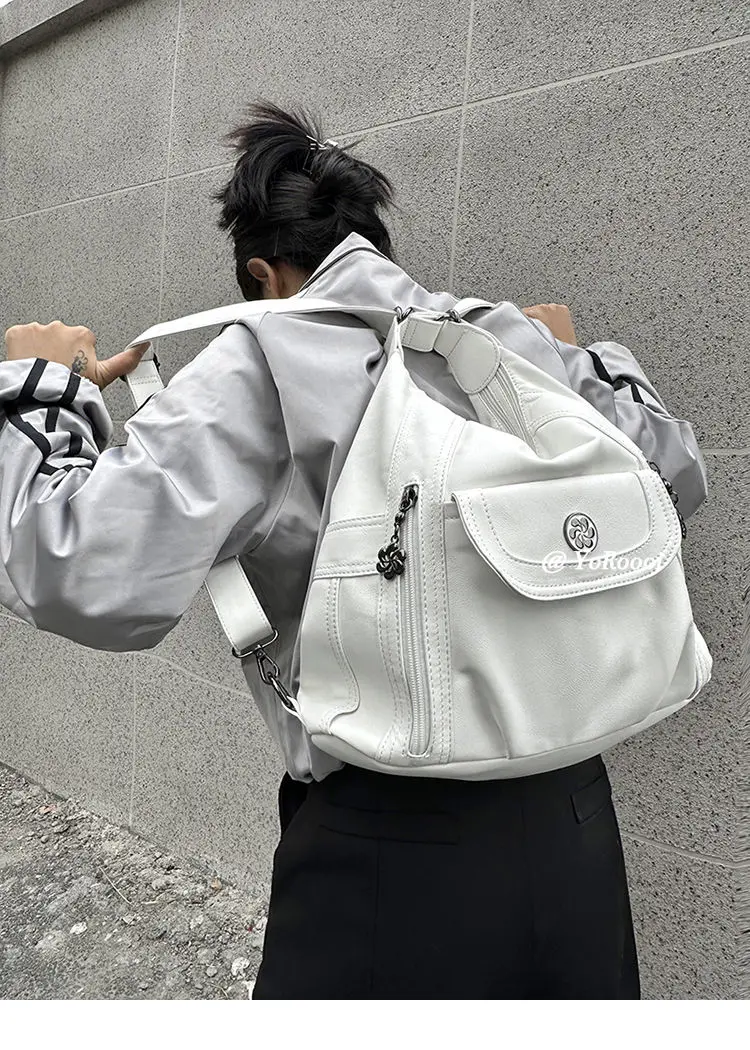 qgtao Vintage Y2k Handbag Women High Street Pu Leather Casual Backpack Messenger Bag Female Harajuku White Mochila Aesthetic