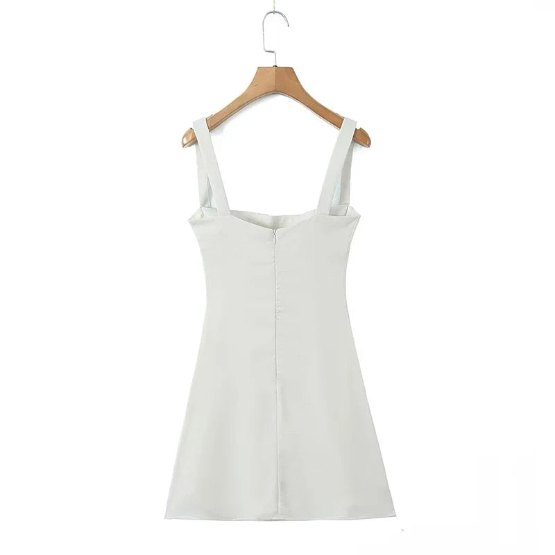 Women Chest Embroidery Sling Sexy Dresses Vintage Black Sleeveless Female Party Mini Robe