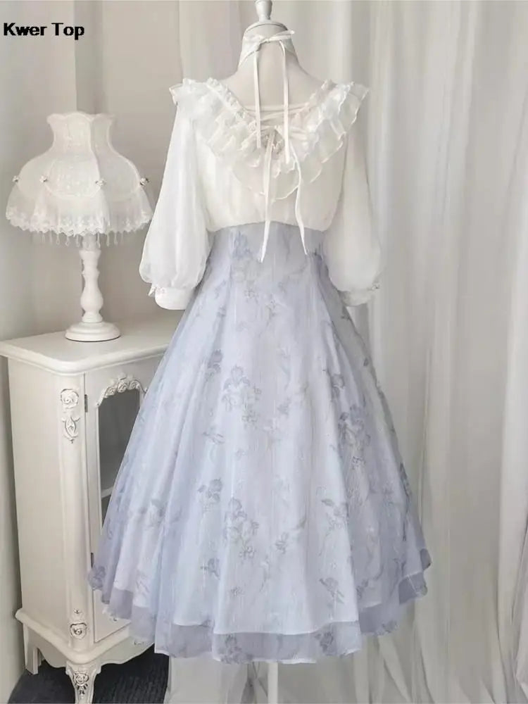 qgtao Women French Elelgant Vintage Midi Dress Korean Sweet Floral Birthday Dancing Parties Vestidos Summer New Slim A-line Clothing