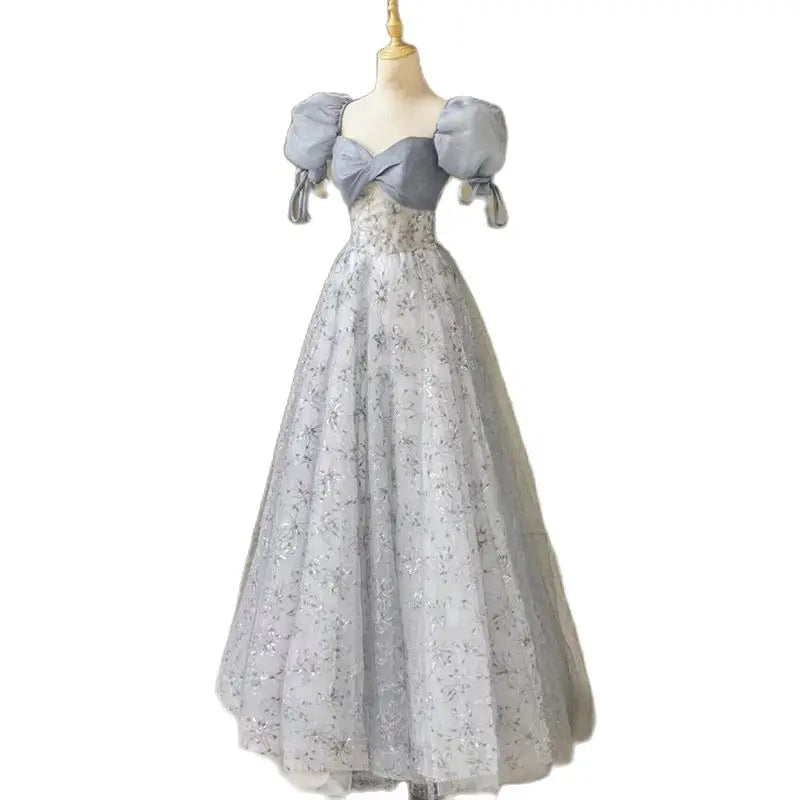 qgtao Women Prom Dress French Style Retro Puff Sleeve Lace-Up Princess Banquet Ball Gown New Long Formal Evening Dress