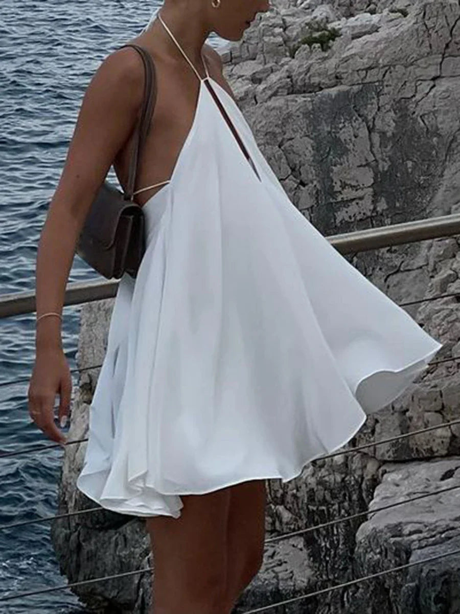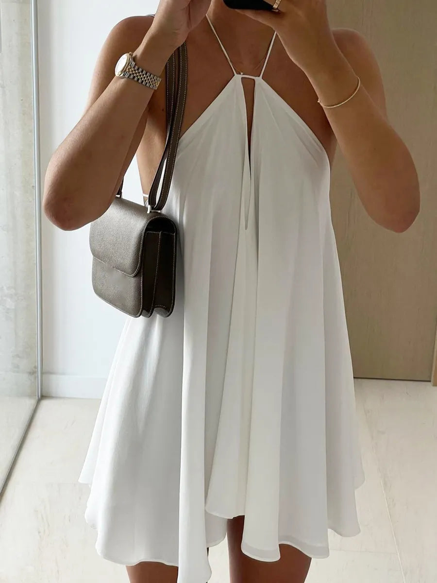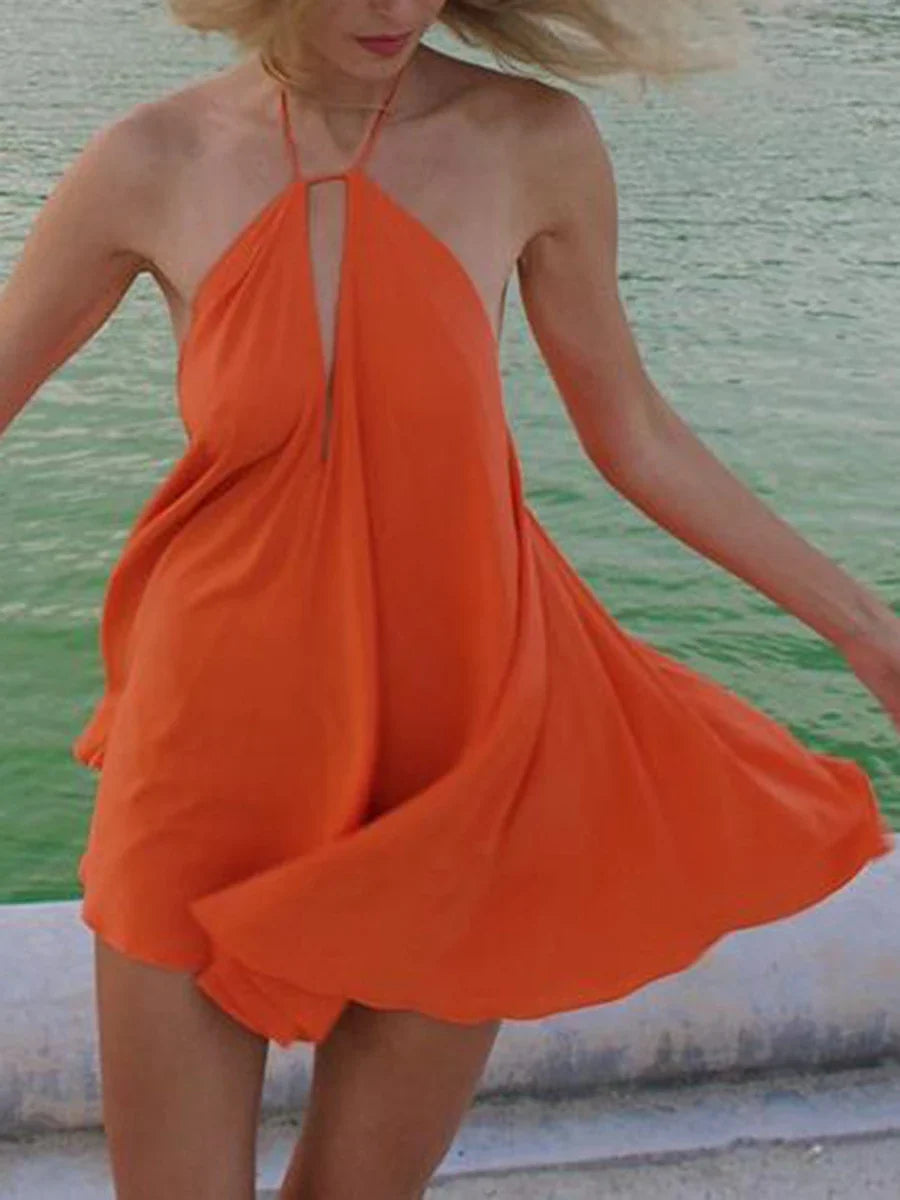 qgtao Women Halter Neck Formal Dress Solid Color Loose Backless Mini Evening Gown for Cocktail Wedding Party Dress