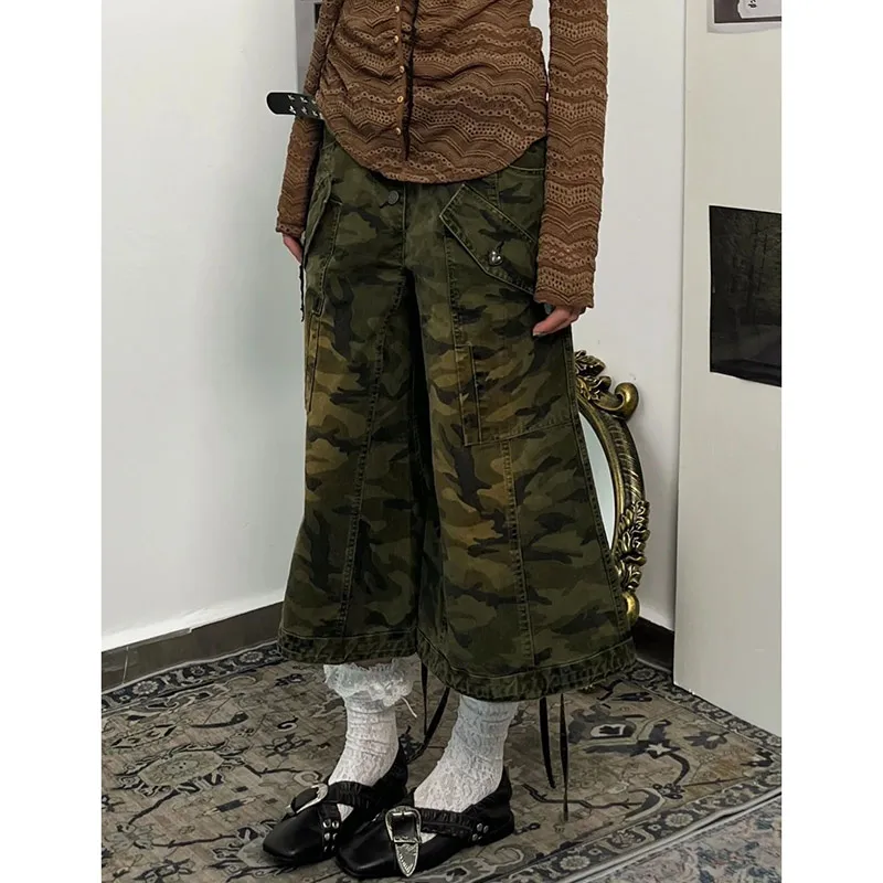 qgtao - Women's Shorts Jeans camouflage High Waist Straight Pants Streetwear Harajuku Y2K Female Wide Leg Denim Five Points Trouser 2024
