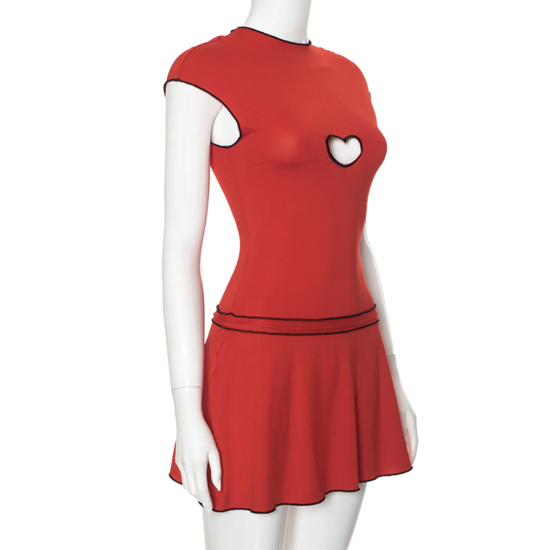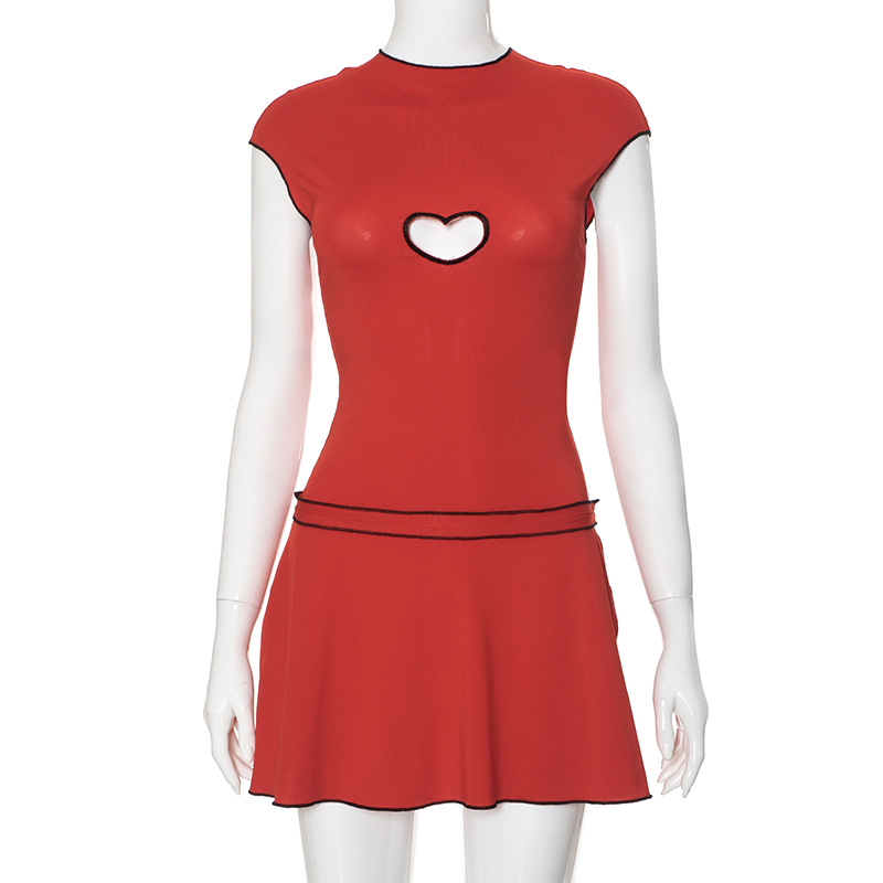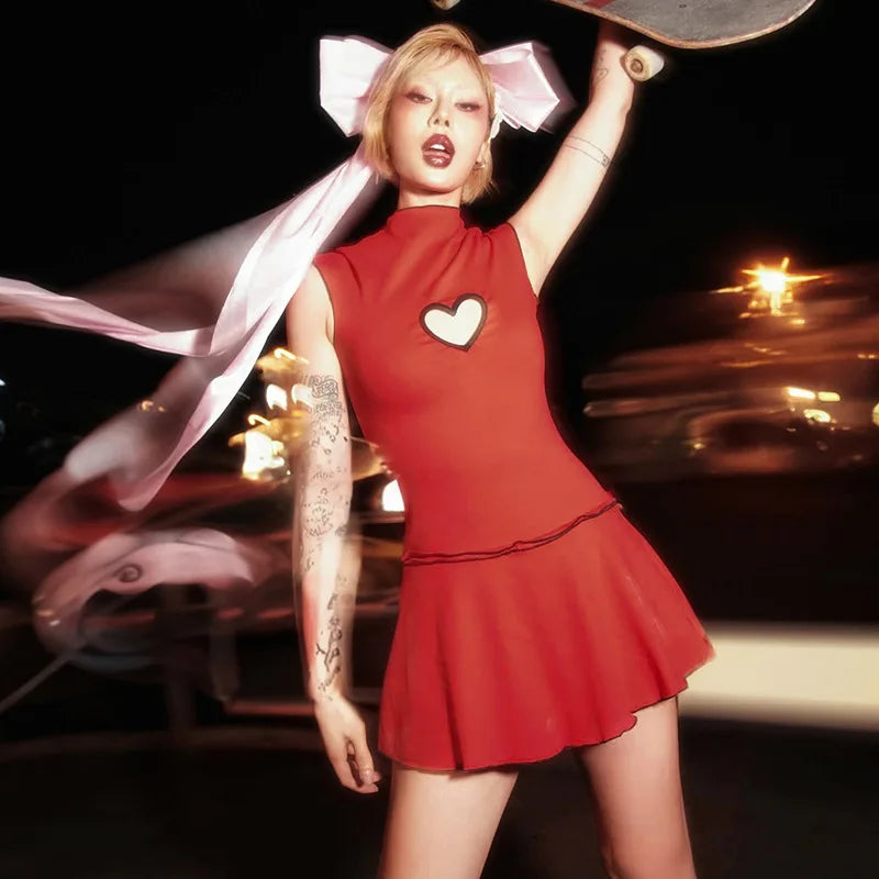 qgtao Y2k Love Hollow Sleeveless Mini Dresses Harujuku Fashion Cute Red Dress 2024 Summer Outfit Woman Clothes