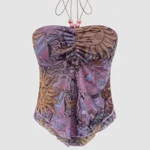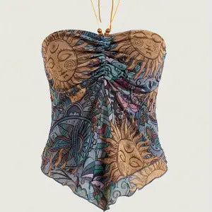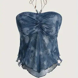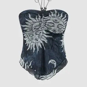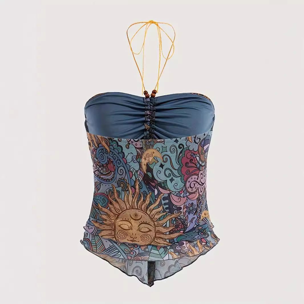 y2k outfits Women's Y2g Mesh Sunflower Irregular Vest Tube Top Halter Strap Beaded Top for Women