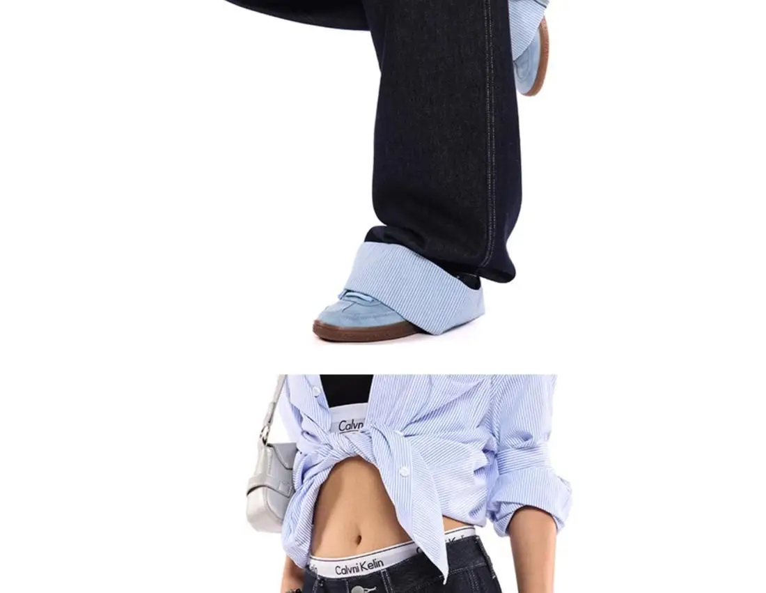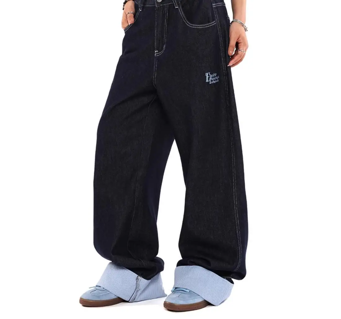 qgtao - Y2k Pink Stripe Patchwork Denim Pants Women Streetwear Vintage Baggy Korean Embroidery Jeans Trousers Harajuku Bottoms